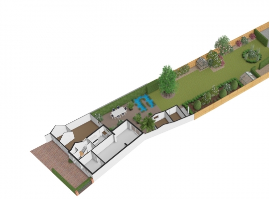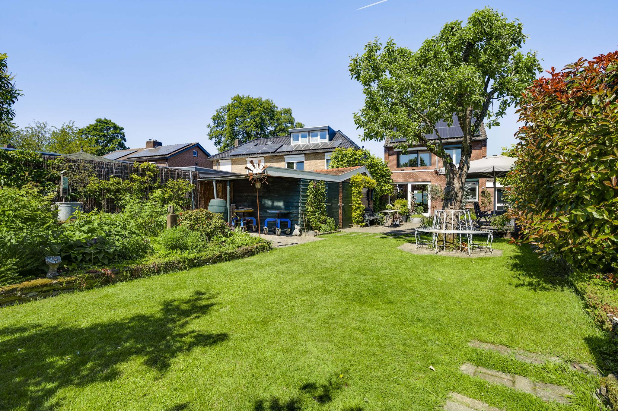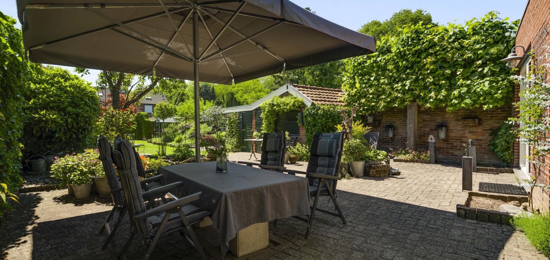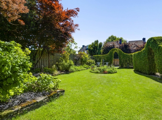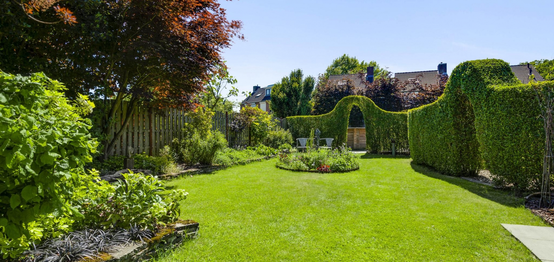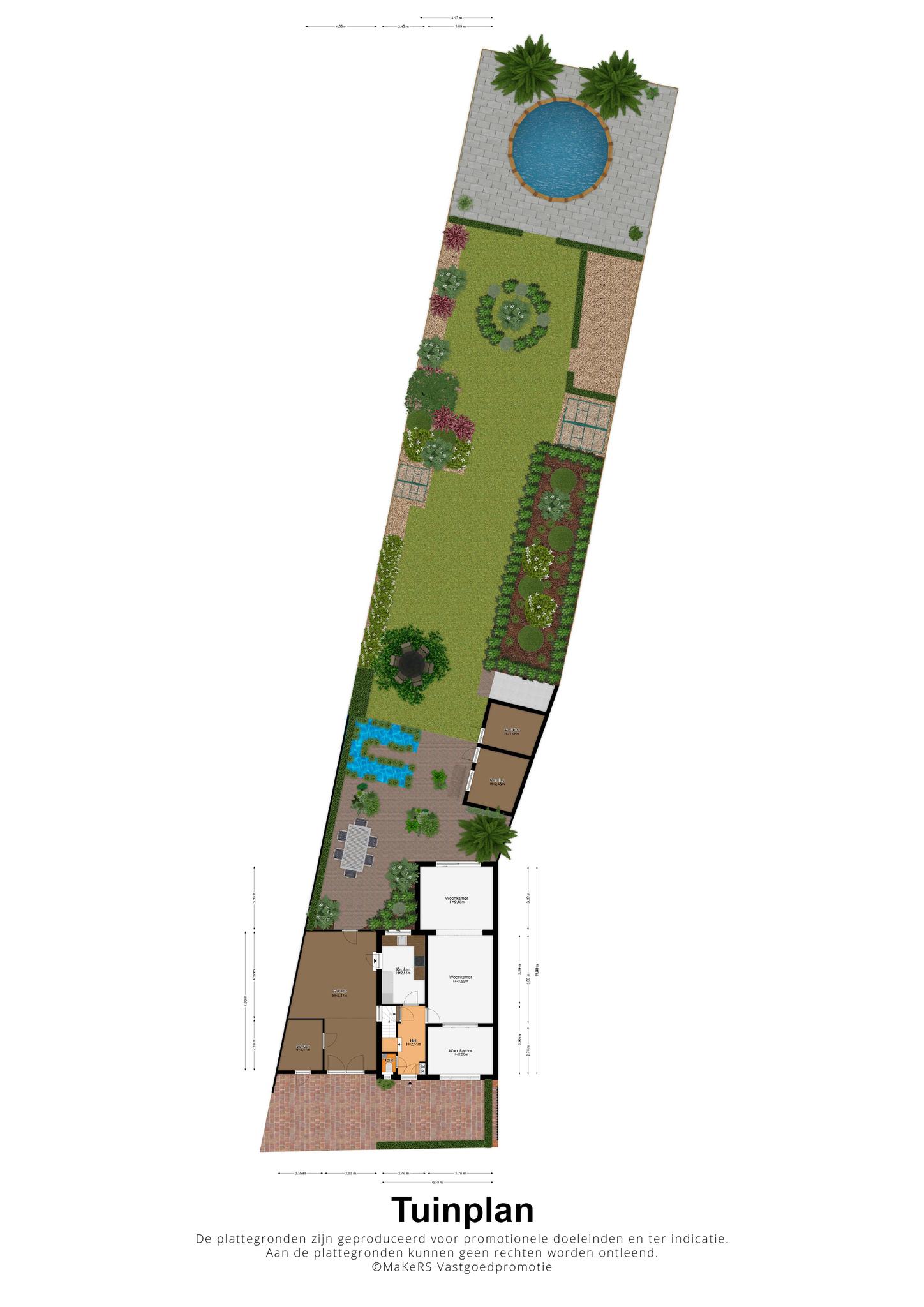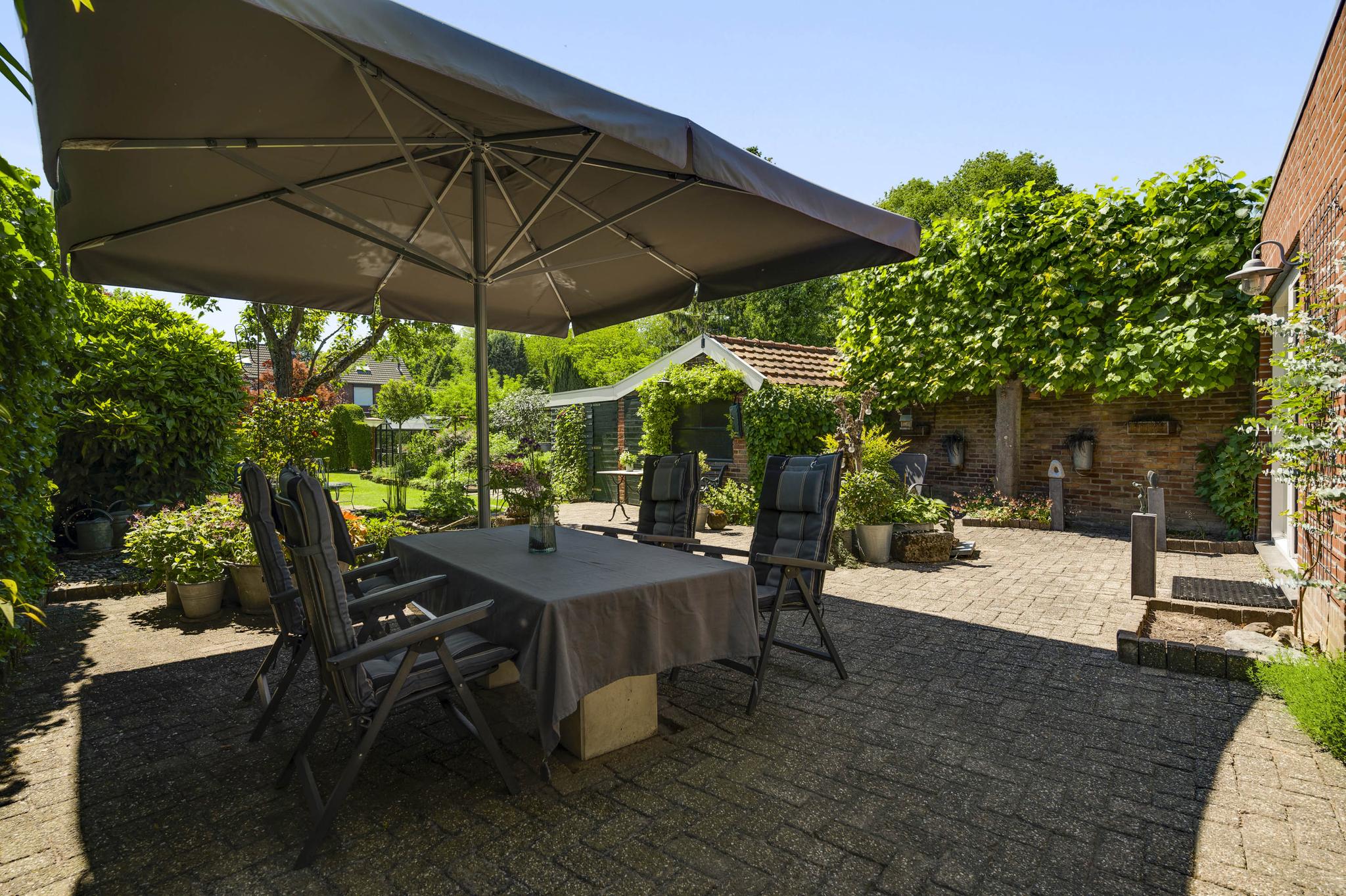 Vanuit de woonkamer en garage is de zeer diepe achtertuin op het zuiden te bereiken. Hier ziet u veel groen, een U-vormige vijver, meerdere terrassen, mooie bomen en een gazon. Er zijn bergingen voor het tuingereedschap en verder zijn er een overkapping, kas en… een groot zwembad met verwarming middels een warmtepomp voor urenlang waterplezier!