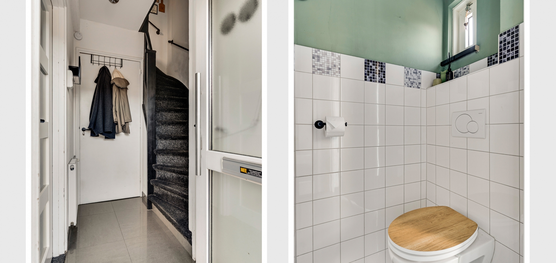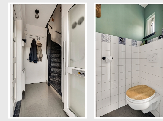 Vanuit de hal heeft u onder andere toegang tot de toiletruimte, uitgevoerd met een wandcloset en fraai tegelwerk. Een verrassende ruimte is de inpandige berging, met de aansluitingen voor de wasmachine en droger.