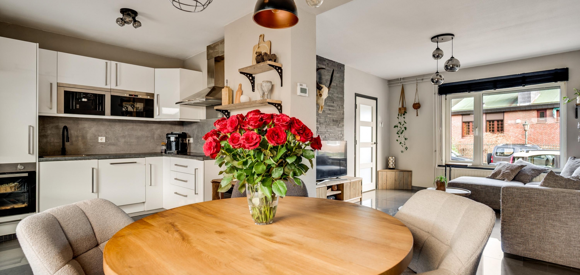 Lichte woonkamer met open keuken