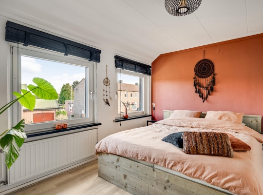 Niet alleen de begane grond, maar ook de eerste verdieping heeft veel sfeer. Vanaf de overloop heeft u toegang tot drie slaapkamers en de badkamer. Op bijna de hele verdieping ligt laminaat op de vloer en ook hier zijn de kozijnen en ramen uitgevoerd in kunststof, voorzien van isolatieglas.