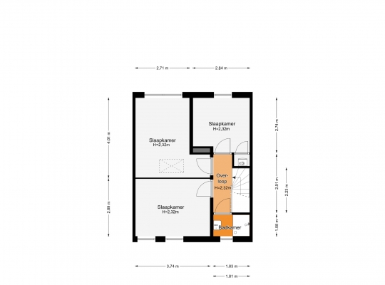 Aan de voorzijde is slaapkamer I (circa 3,74 x 2,89), in gebruik als master bedroom. Slaapkamer II (circa 4,01 x 2,71) en slaapkamer III (circa 2,74 x 2,84) vindt u aan de achterzijde. In een vaste kast op slaapkamer III is de opstelling van de HR-ketel (Remeha, 2021, eigendom).