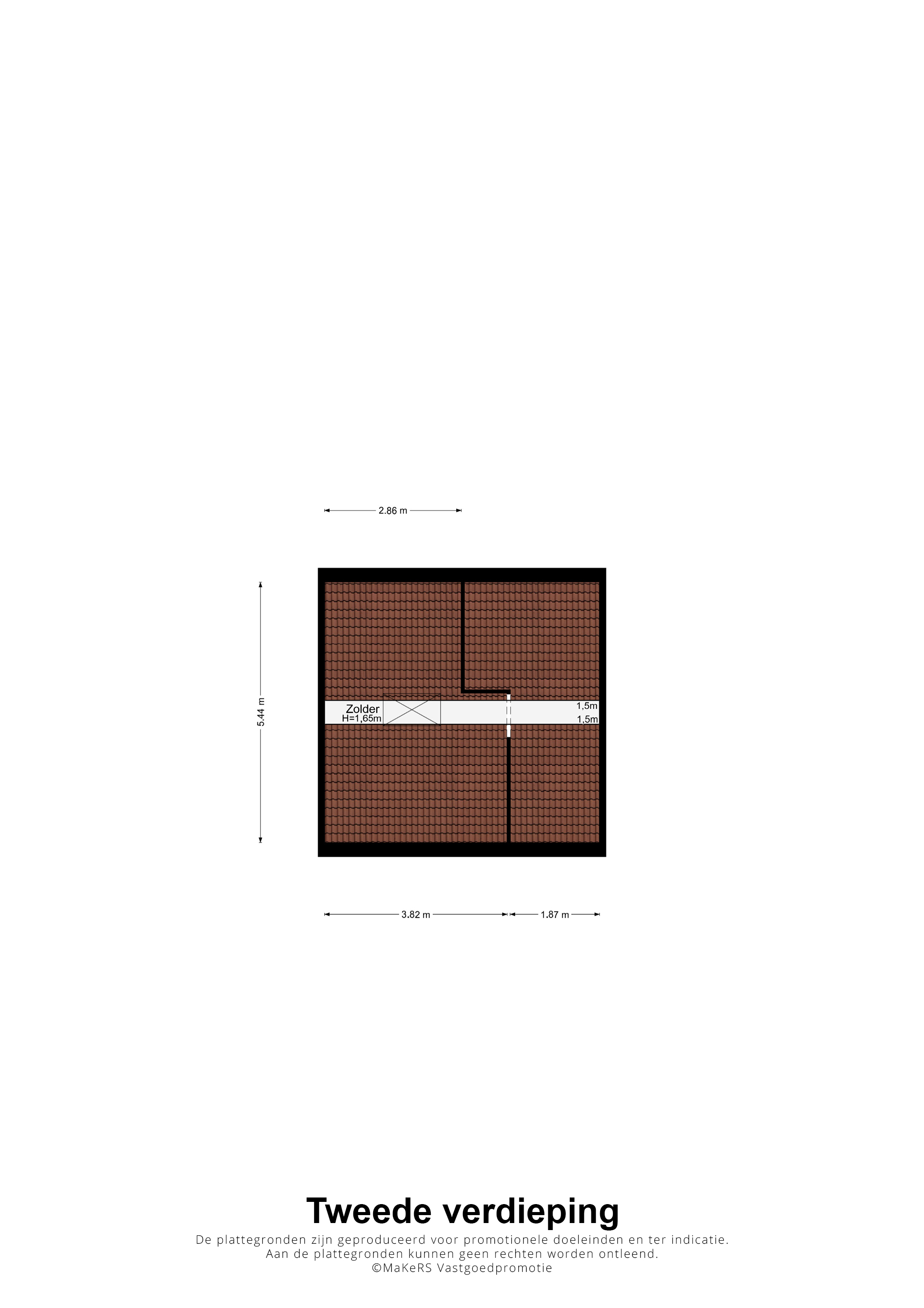 Vanuit een van de slaapkamers is er toegang tot de zolder, die uit twee ruimtes bestaat. De nokhoogte bedraagt circa 1,65 meter.