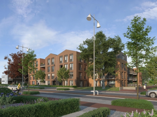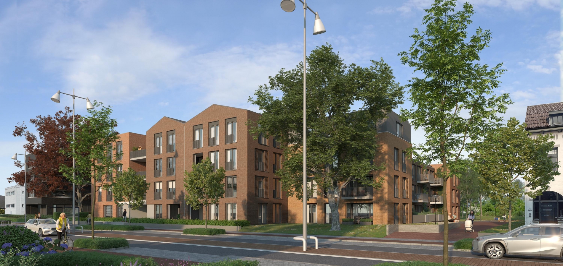 De afwisseling in verschillende tinten bakstenen en diverse dakvormen zorgen voor een dynamisch gevelbeeld. De appartementen profiteren optimaal van het daglicht.