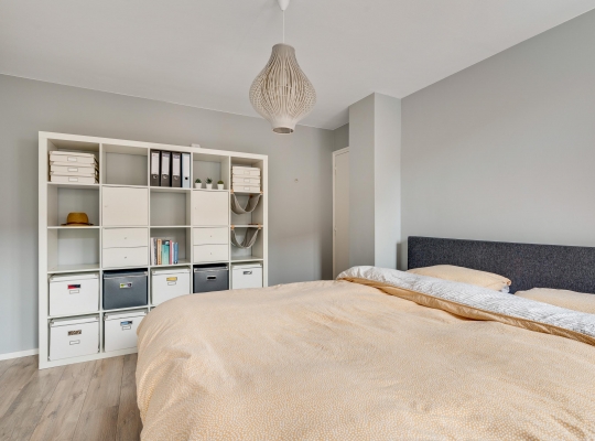 Slaapkamer I met vaste kastenwand is aan de voorzijde en slaapkamer II met airco bevindt zich aan de achterzijde. In beide kamers ligt laminaat en de algehele afwerking is fraai.