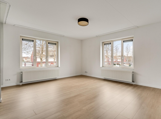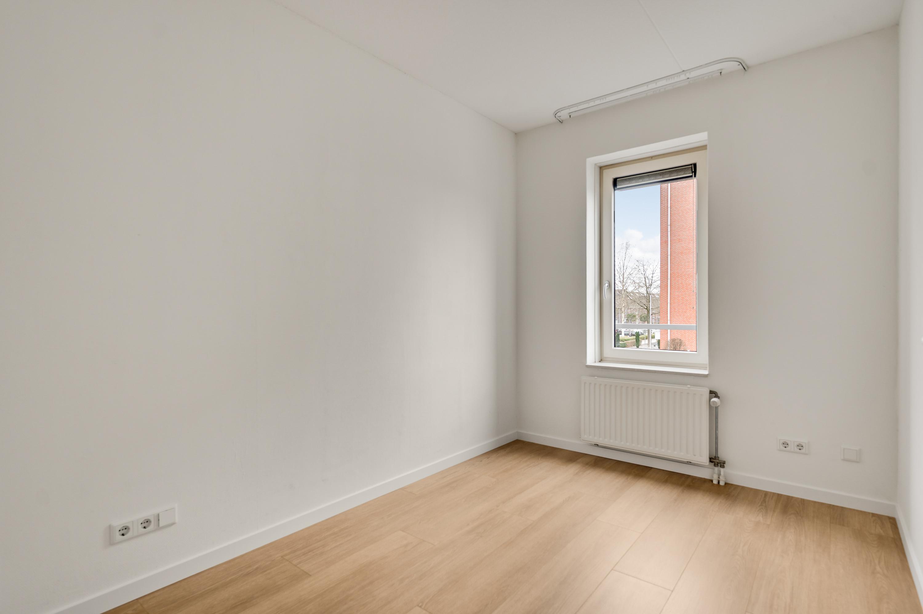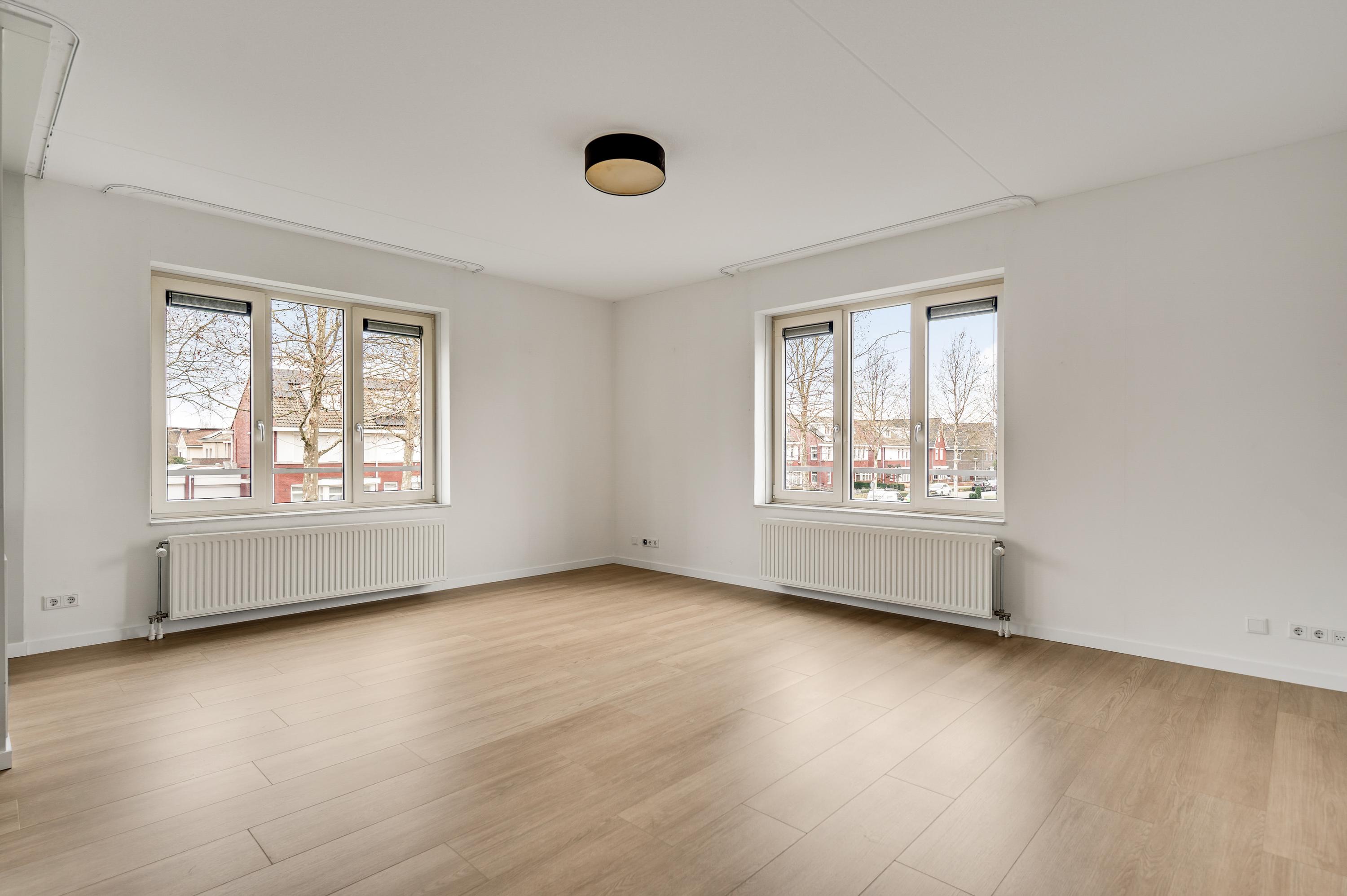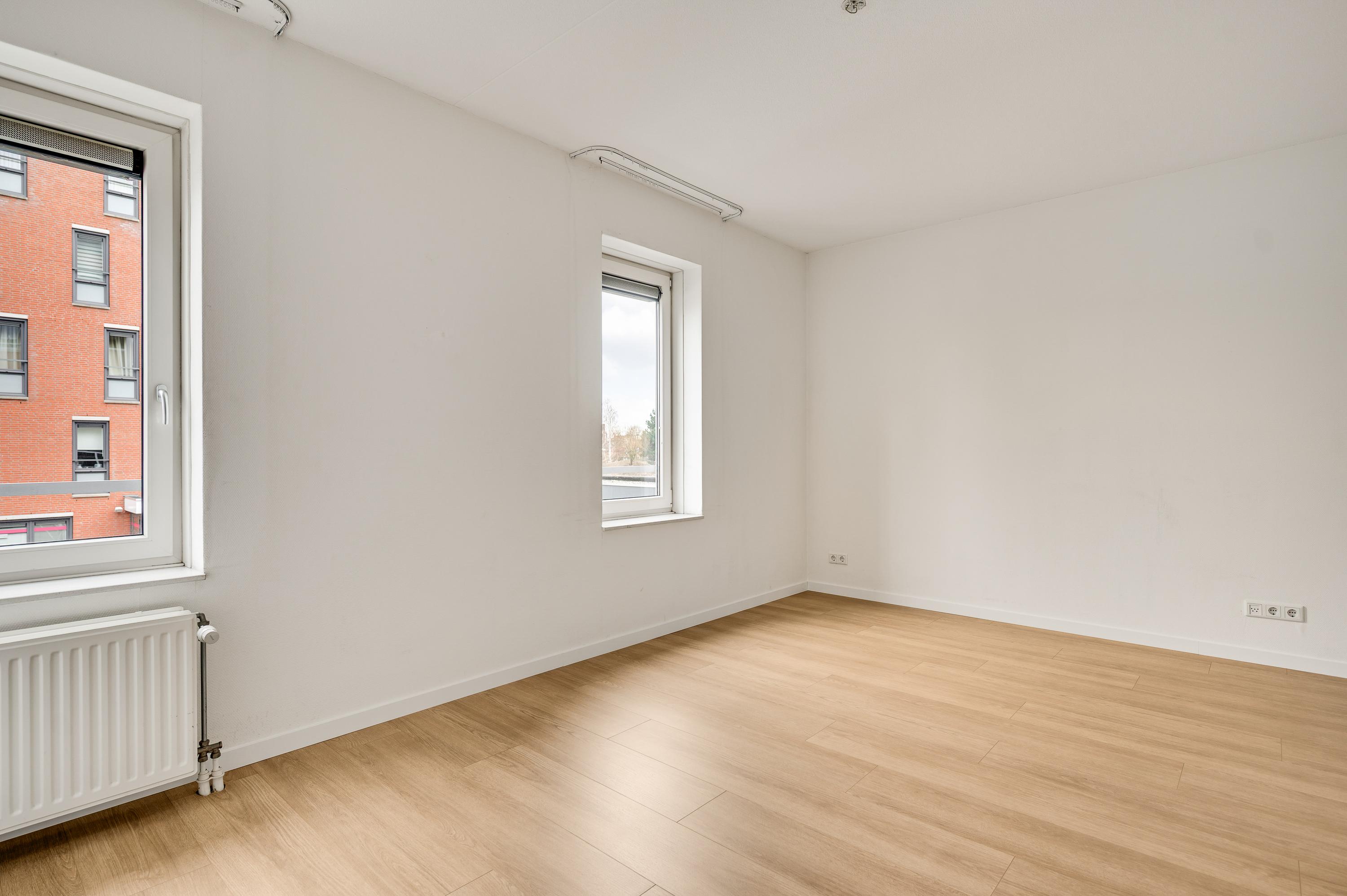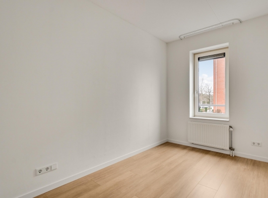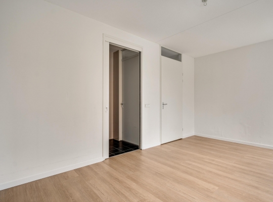 De woonkamer (circa 40 m2 inclusief keuken) is een goed in te delen leefruimte met lichtinval vanaf twee kanten. Voor een royale zithoek, een tv-meubel en de eettafel is genoeg plek. Het uitzicht op de mooie omliggende woningen maakt het wonen in dit appartement heel aantrekkelijk.