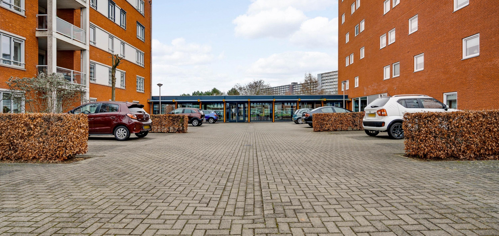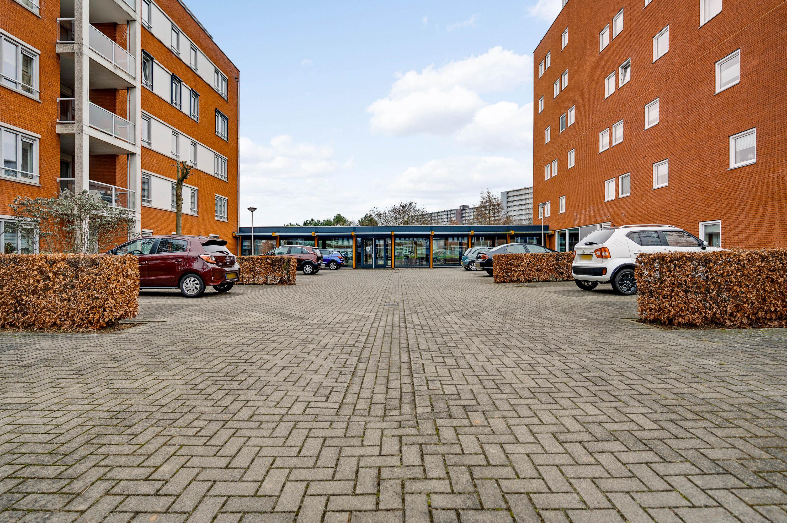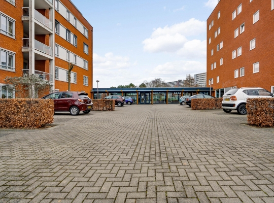 Bij de centrale entree zijn de brievenbussen, het bellentableau en de video-intercom. Eenmaal binnen kunt u met de trap of lift naar het appartement, gesitueerd op de eerste verdieping. Bij het appartement hoort een privéberging van circa 3,01 x 1,76 meter. Vlak naast het gebouw is een parkeerterrein, aan de straatzijde afgesloten met een slagboom.