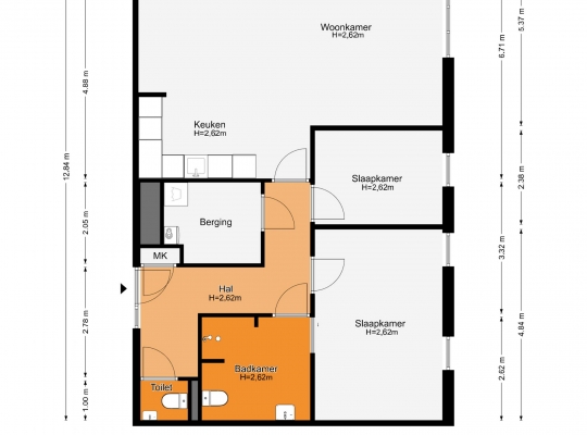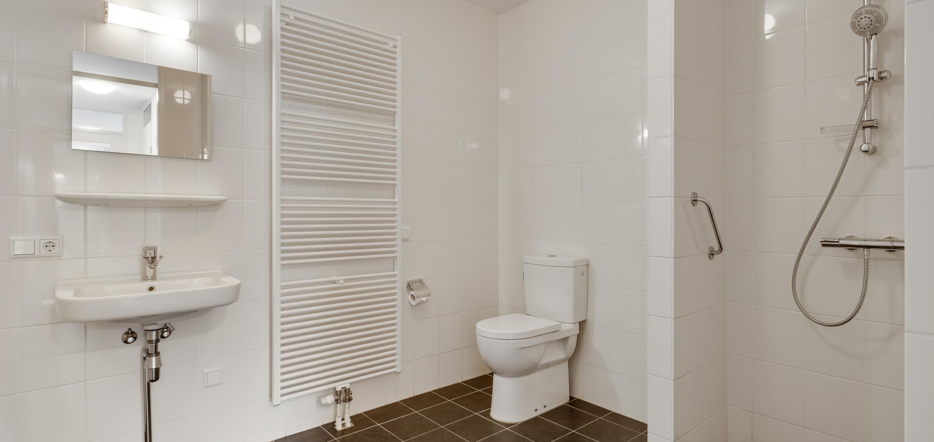 Vanuit de hal heeft u toegang tot twee slaapkamers. Slaapkamer I (circa 4,84 x 3,24) is de ruime master bedroom en slaapkamer II (circa 2,38 x 3,24) is goed in te delen met een bed, bureau en een (garderobe)kast. De badkamer (circa 2,62 x 2,75) is ingedeeld met een inloopdouche, een wastafel met spiegel en planchet, een handdoekenradiator en een tweede toilet.