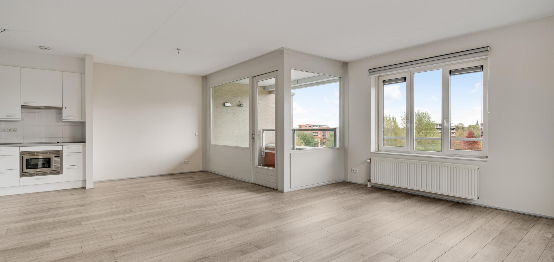 Ruim balkon, te bereiken vanuit de woonkamer