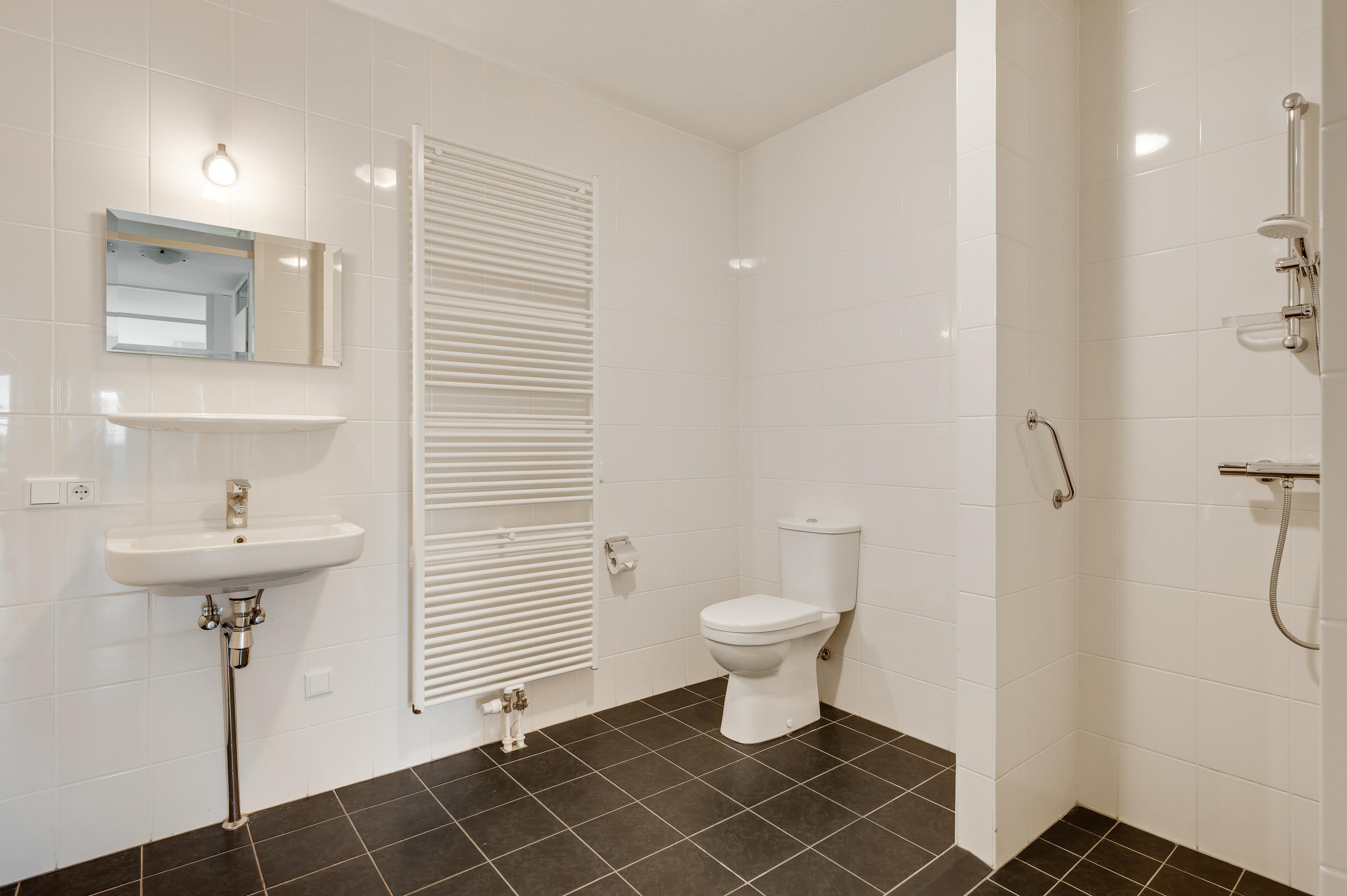 Vanuit de hal heeft u toegang tot twee slaapkamers. Slaapkamer I (circa 4,86 x 3,26) is de ruime master bedroom en slaapkamer II (circa 2,41 x 3,26) is goed in te delen met een bed, bureau en een (garderobe)kast. De badkamer (circa 2,72 x 2,61) is ingedeeld met een inloopdouche, een wastafel met spiegel en planchet, een handdoekenradiator en een tweede toilet.