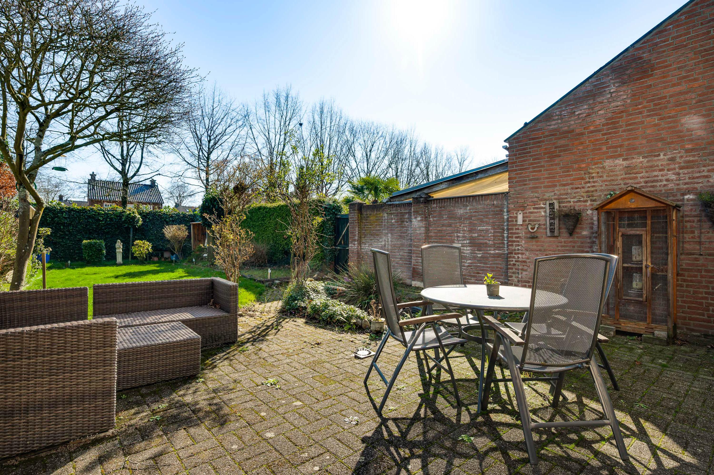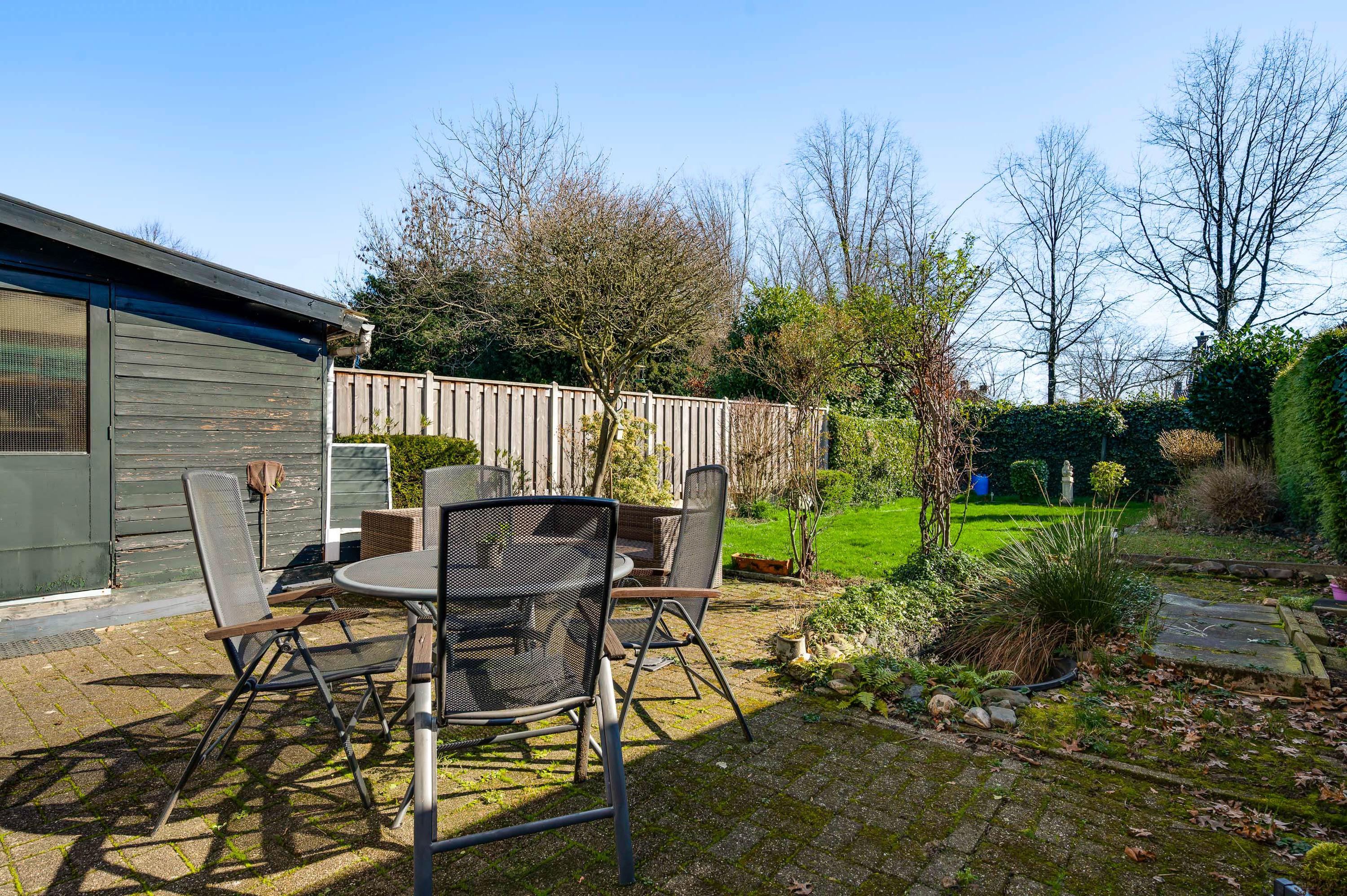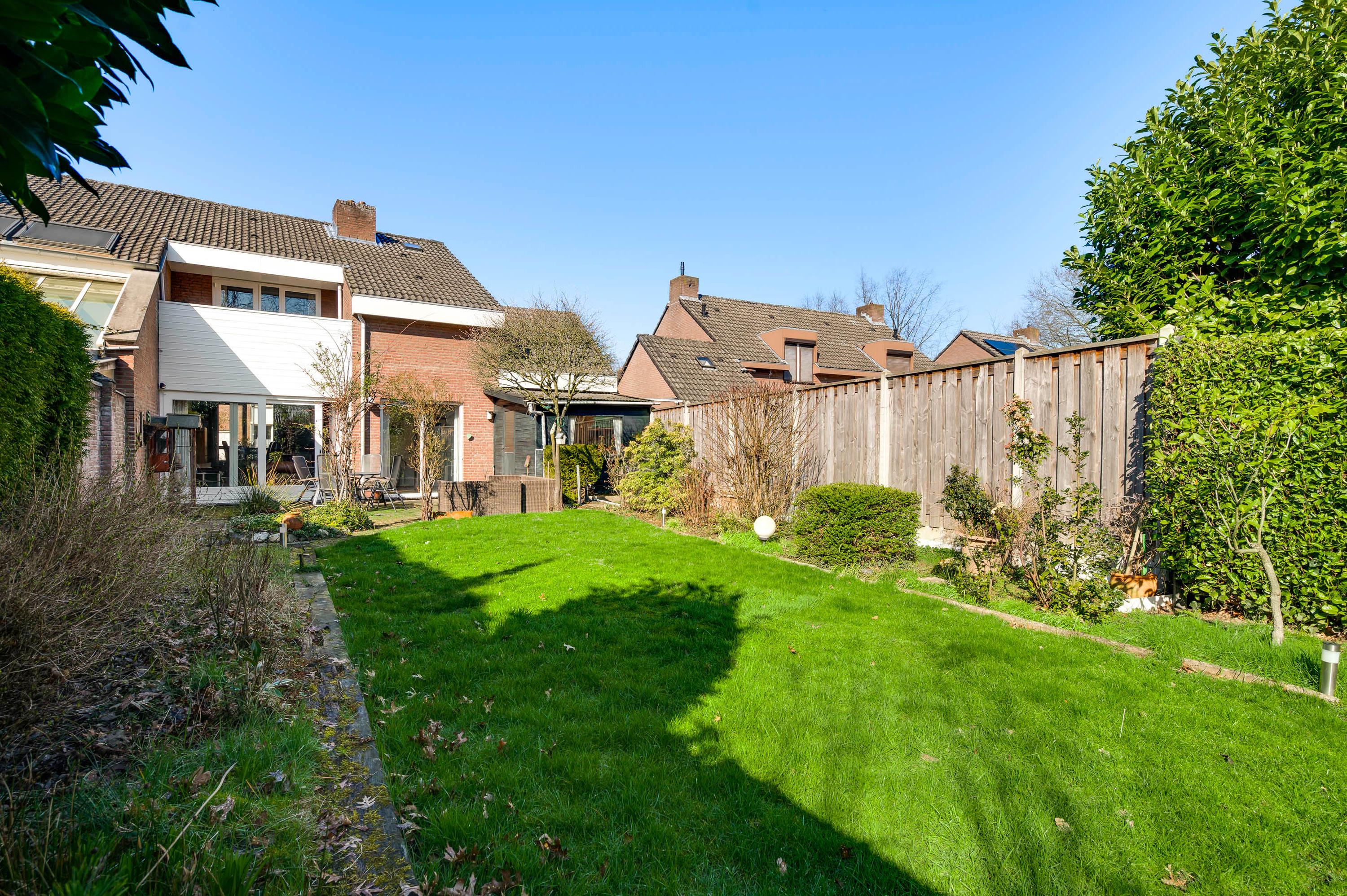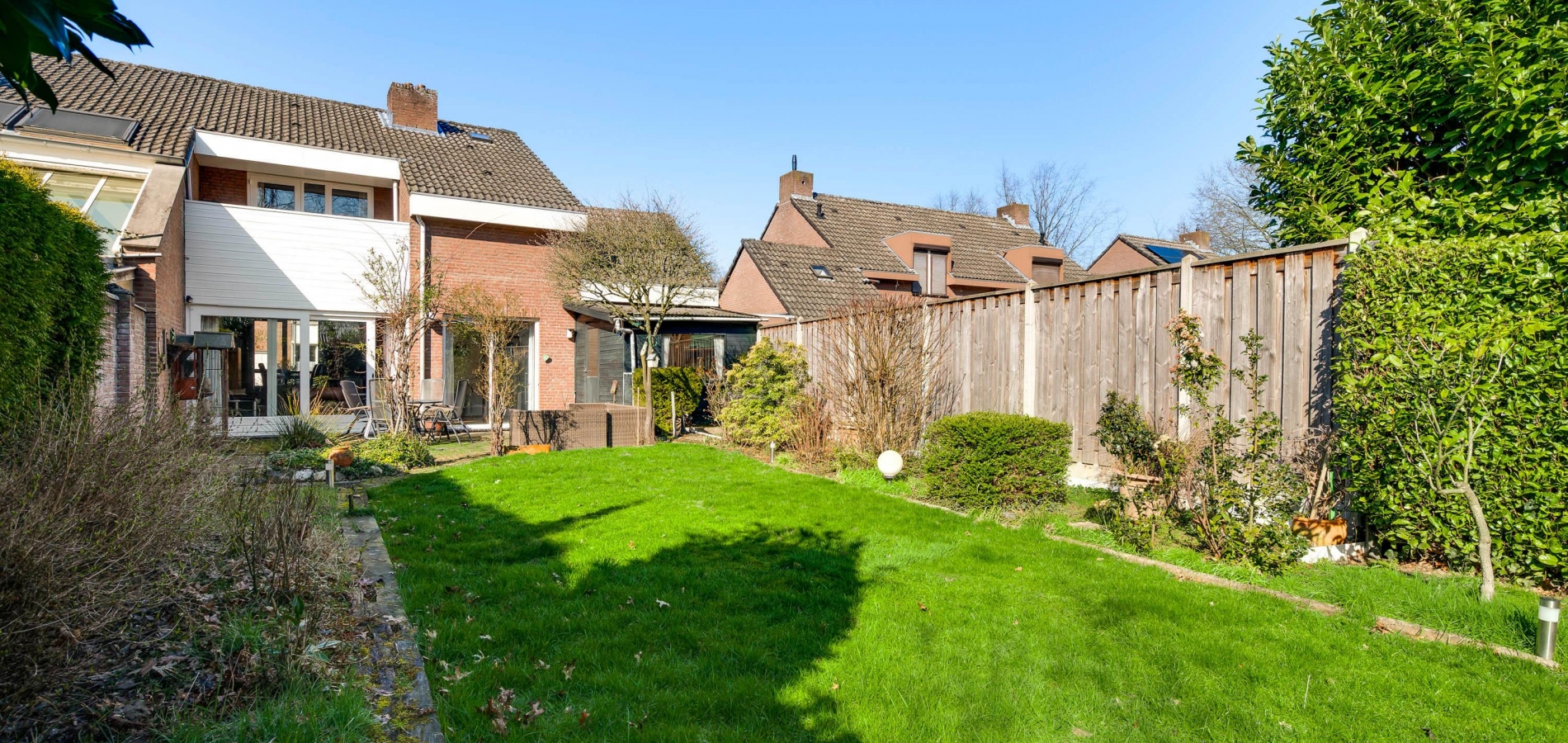 In de mooi aangelegde voortuin ziet u gevarieerd groen en op de oprit is ruimte voor meerdere auto’s. Via de woonkamer loopt u de diepe tuin in, gesitueerd op het oosten. Het grote terras is een fijne plek om buiten te zitten en verder is er veel groen, waar kinderen kunnen spelen op het gazon.