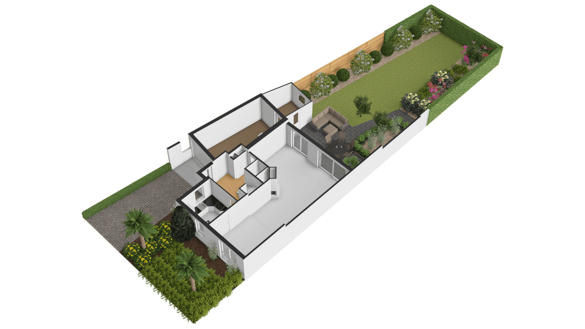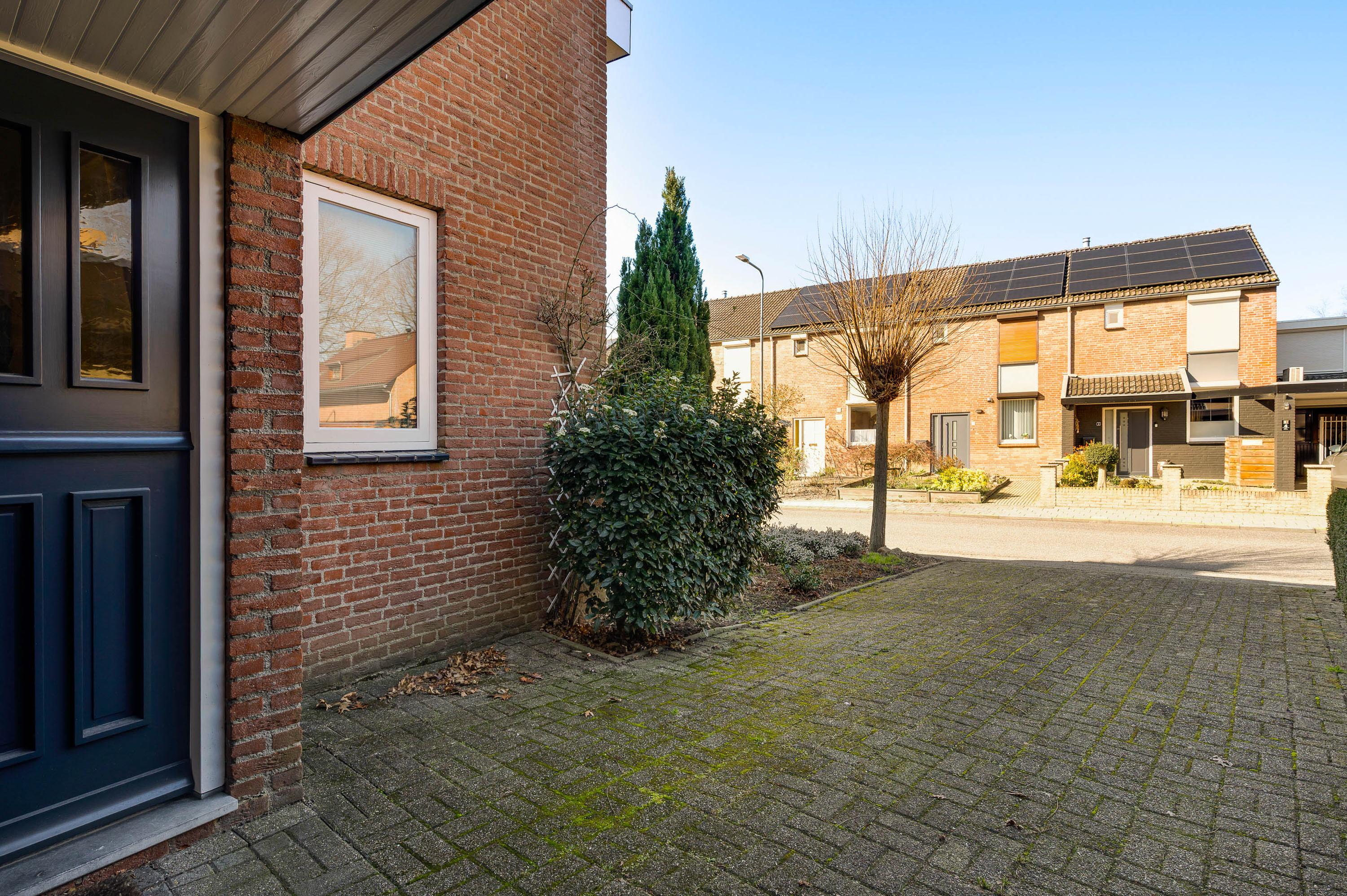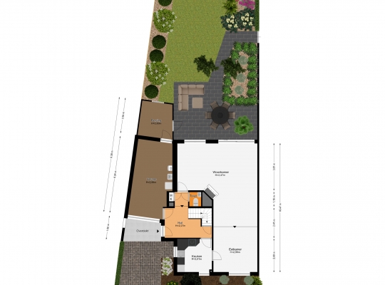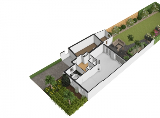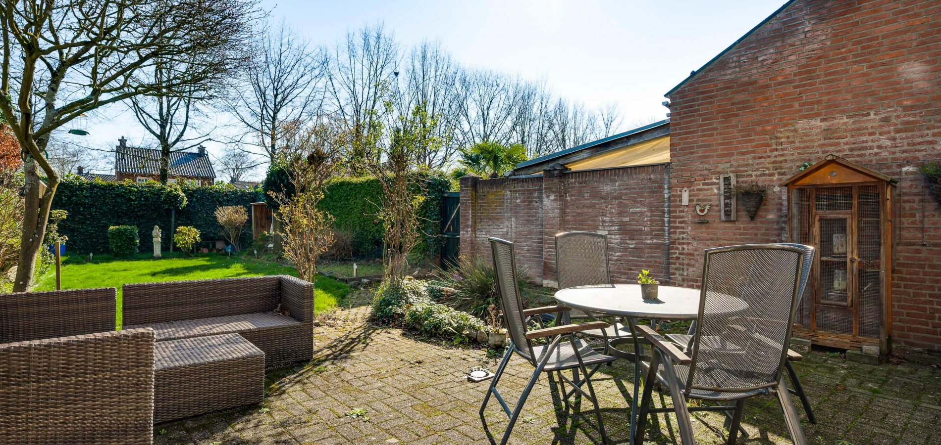 In de mooi aangelegde voortuin ziet u gevarieerd groen en op de oprit is ruimte voor meerdere auto’s. Via de woonkamer loopt u de diepe tuin in, gesitueerd op het oosten. Het grote terras is een fijne plek om buiten te zitten en verder is er veel groen, waar kinderen kunnen spelen op het gazon.
