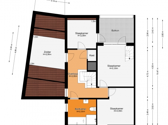 Vanaf de overloop heeft u toegang tot drie slaapkamers, de badkamer en een zolder. Slaapkamer I (circa 3,62/2,49 x 3,60) is aan de voorzijde en slaapkamer II (circa 4,00 x 3,57) is, net als slaapkamer III (circa 2,98 x 2,84), aan de achterzijde. Deze kamers hebben beide toegang tot het balkon (circa 3,42 x 2,42), met prachtig uitzicht op de diepe tuin.
