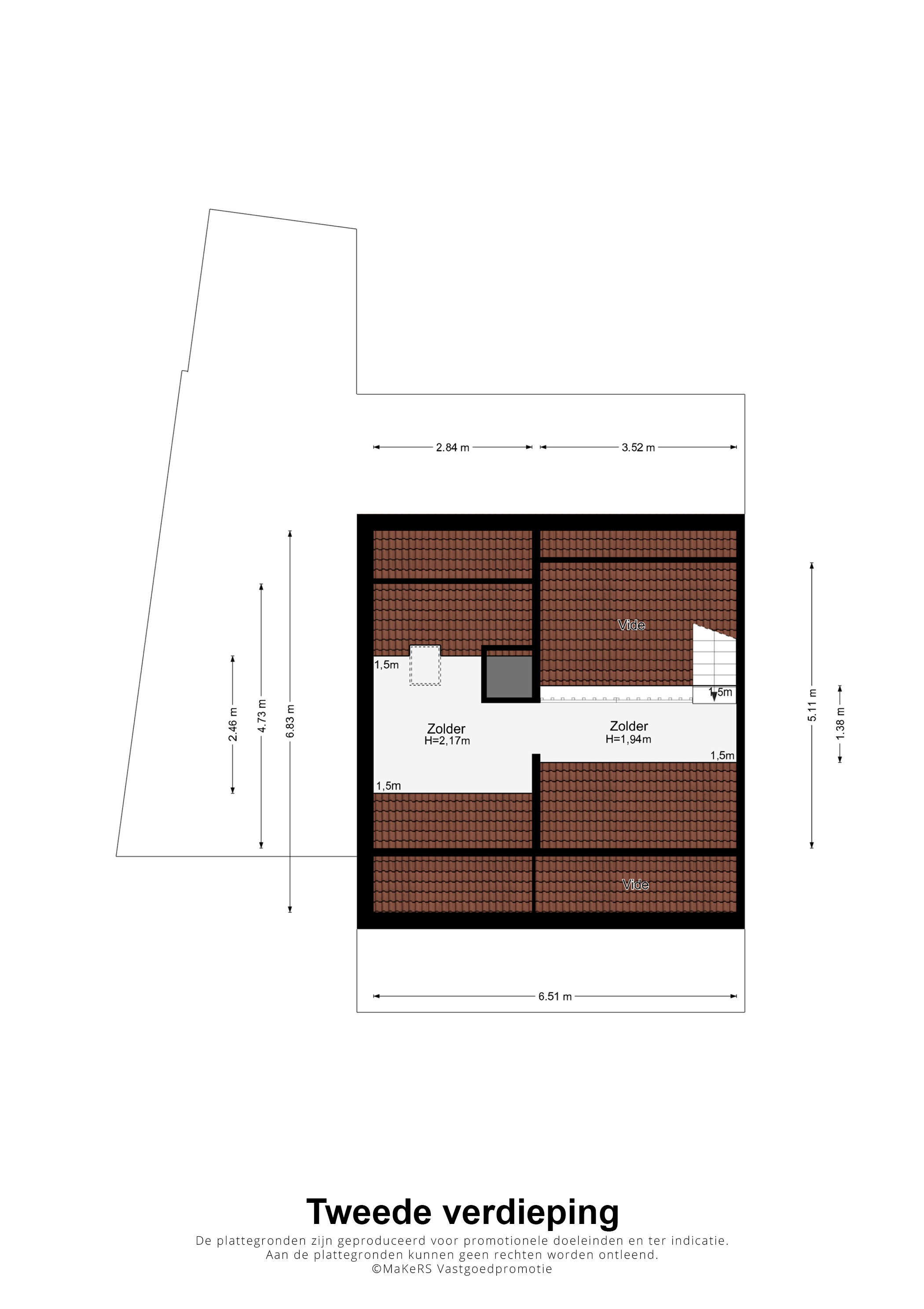 In slaapkamer II is een vaste trap naar de tweede verdieping. Hier zijn twee zolderruimtes, waarvan een als slaapkamer of werkkamer gebruikt kan worden. Zolder I (circa 3,52 x 1,38) grenst aan de vide van de master bedroom en zolder II (circa 4,73 x 2,84) heeft een dakraam aan de achterzijde.