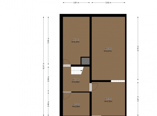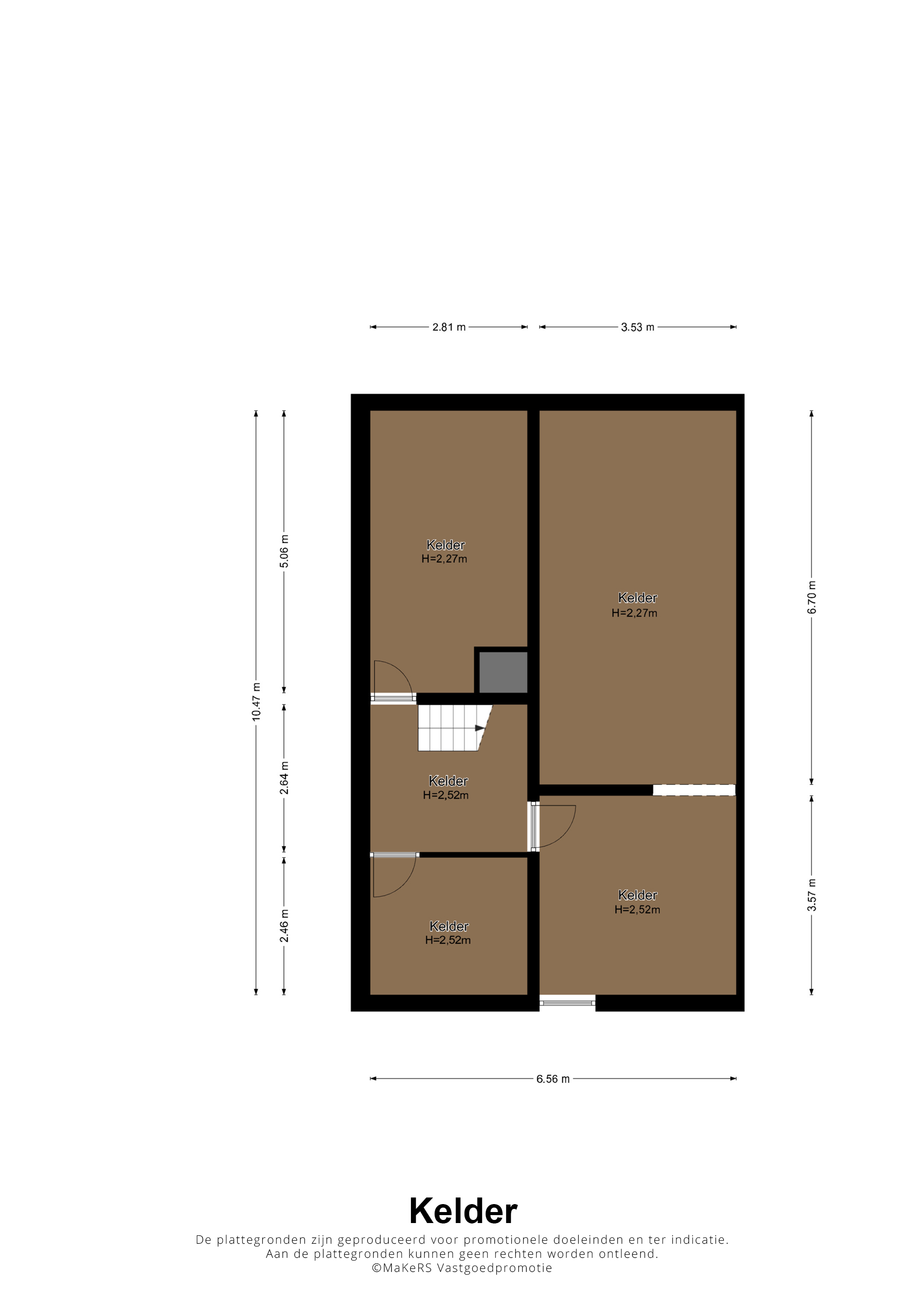 Wat u aan de buitenzijde niet ziet, is het ruime souterrain met maar liefst vijf kelderruimtes, waarvan een met de trap naar de begane grond. Kelder I (circa 2,81 x 2,46), kelder II (circa 3,57 x 3,53) en kelder III (circa 2,64 x 2,81) hebben een plafondhoogte van circa 2,52 meter. Aan de achterzijde zijn kelder IV (circa 5,06 x 2,81) en kelder V (circa 6,70 x 3,53) hebben een plafondhoogte van 2,27 meter. Perfect als opslagruimte, wijnkelder, provisieruimte en/of hobbyruimte!