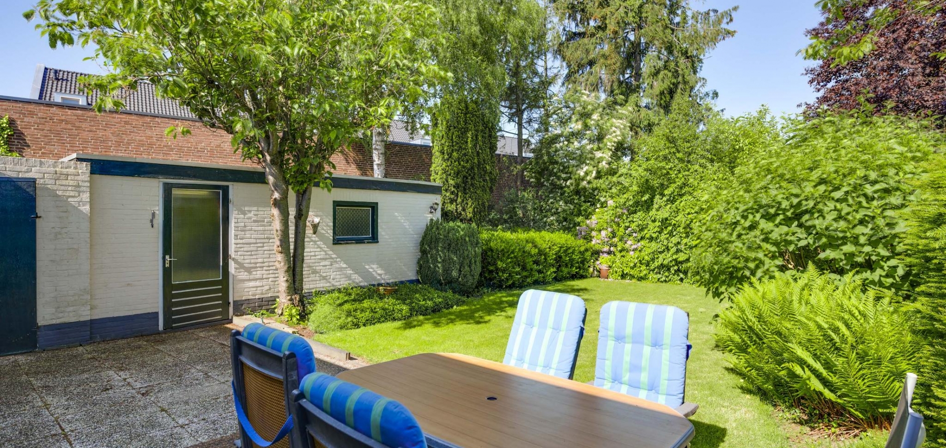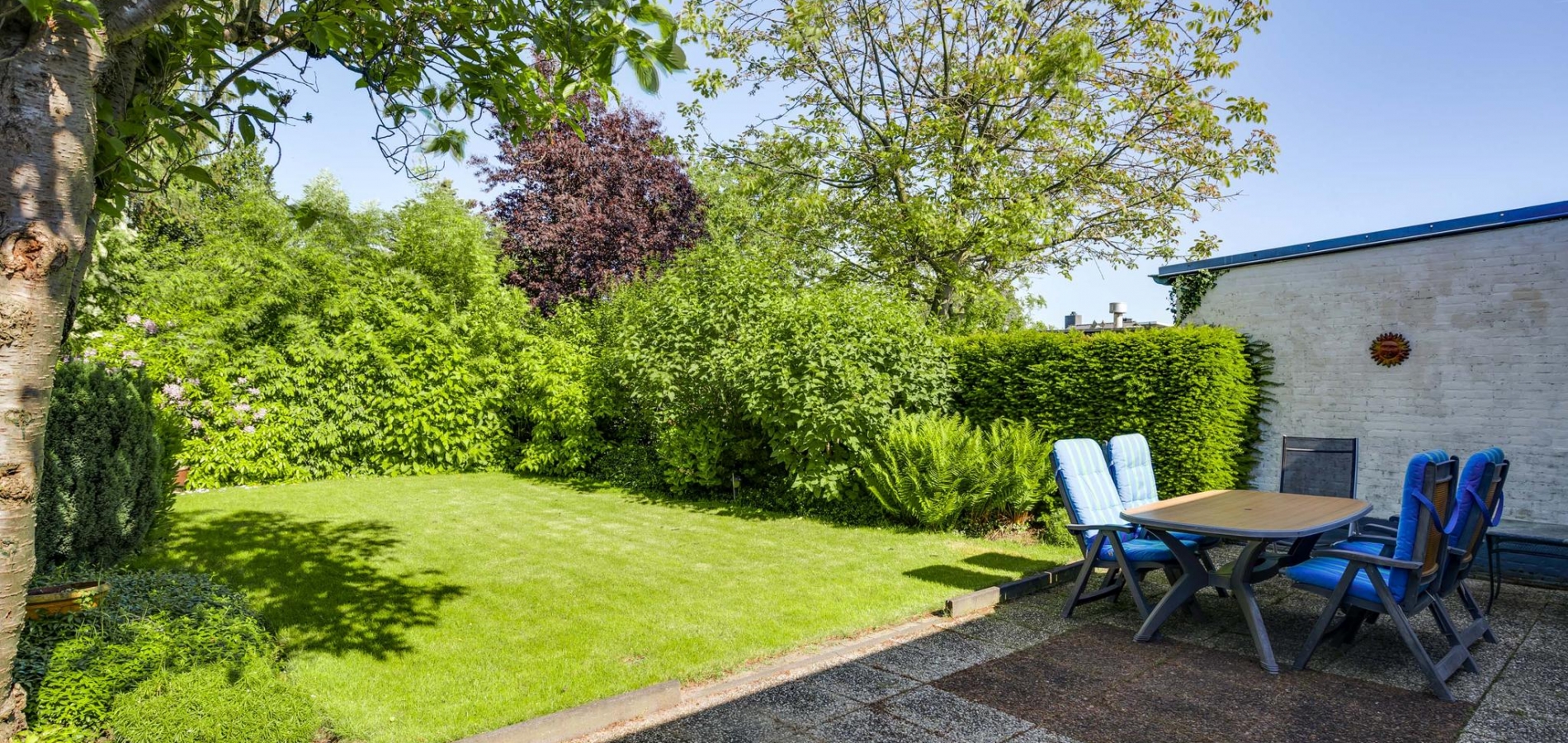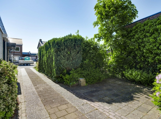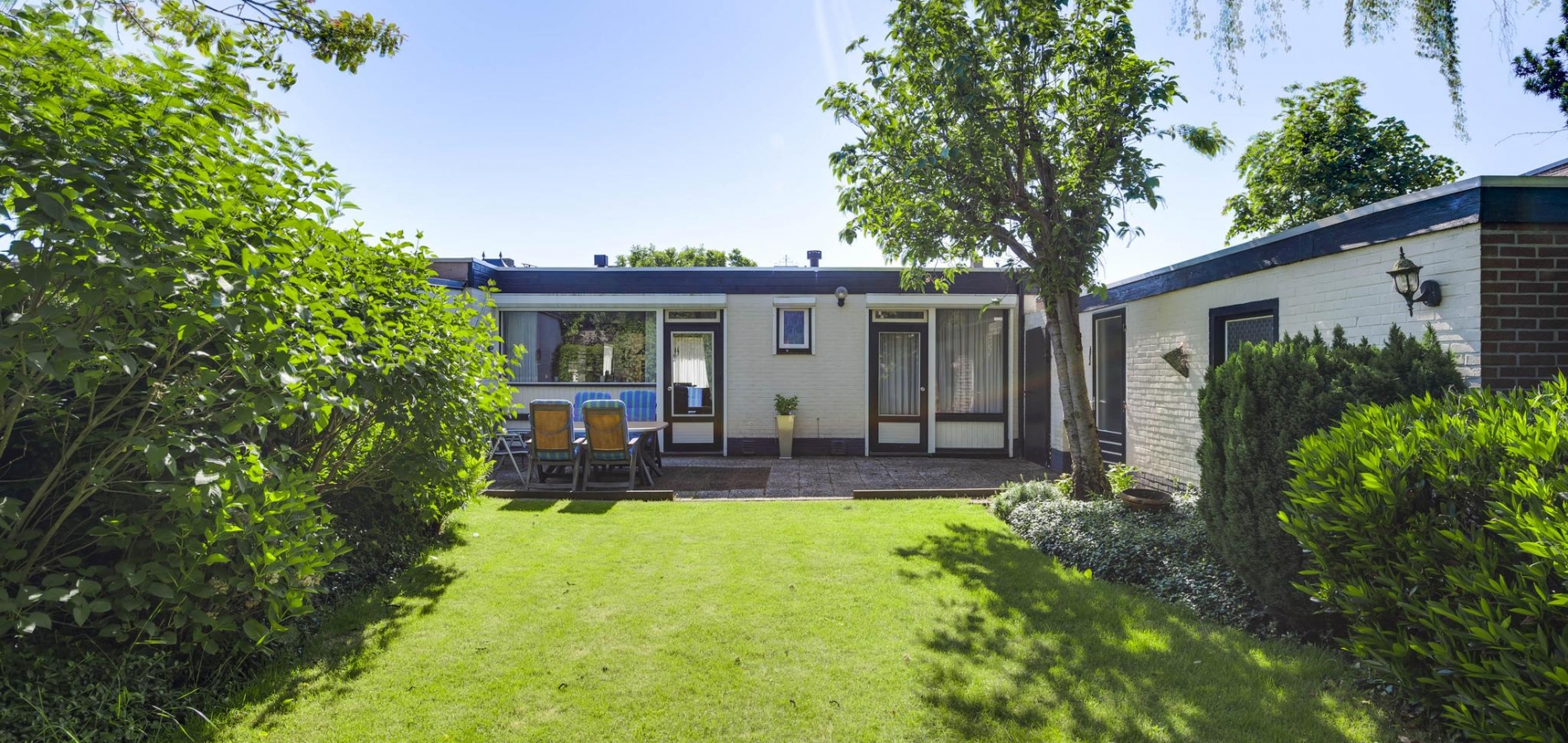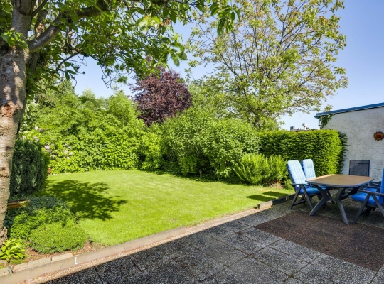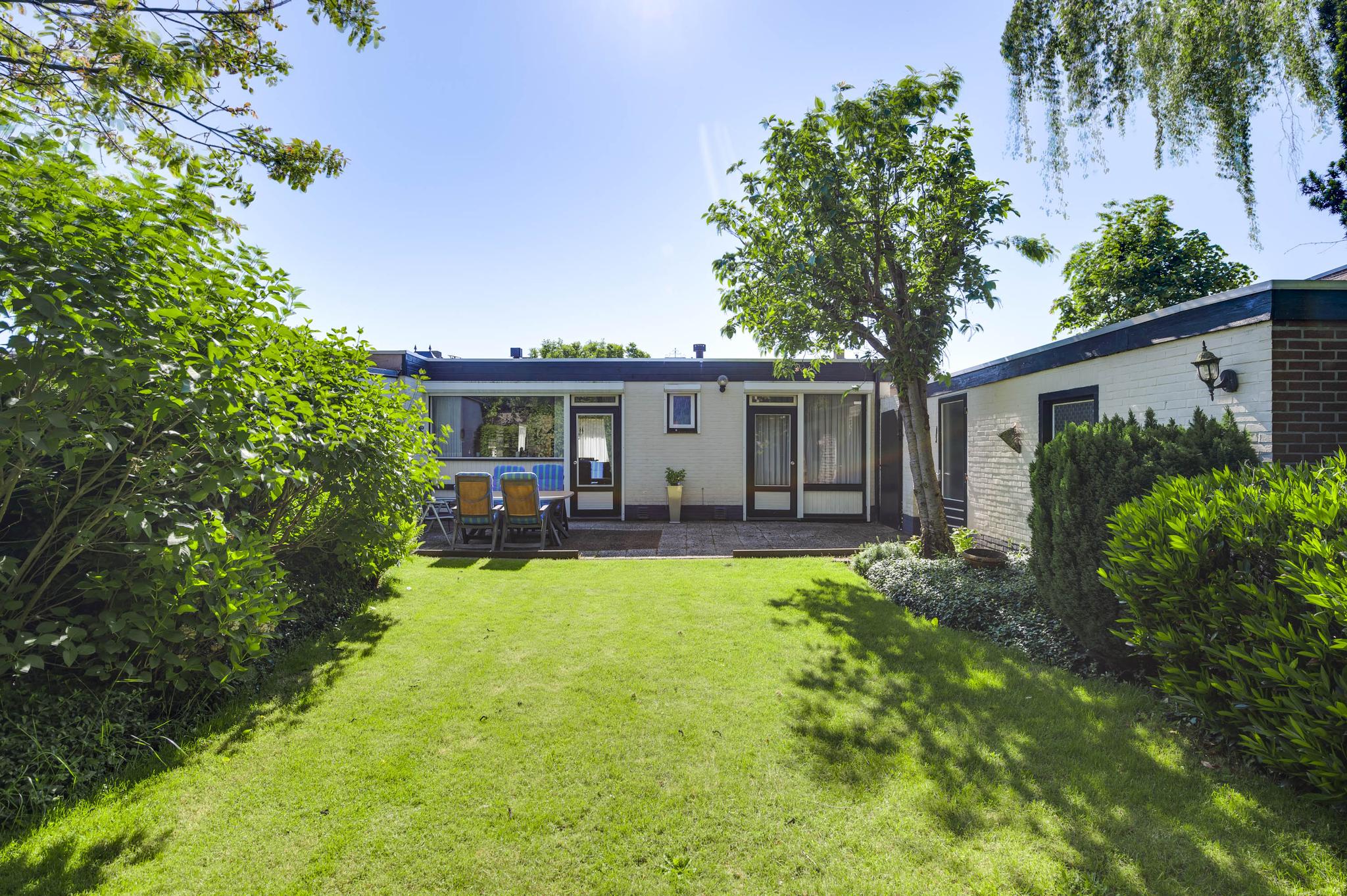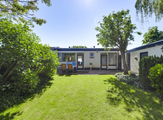 Rondom de bungalow ligt een mooi aangelegde tuin, waarbij de achtertuin op het westen gesitueerd is. Op de diepe oprit is parkeergelegenheid voor meerdere auto’s en in de achtertuin ervaart u veel privacy. Het terras aan de linkerzijde, bij de oprit, is gesitueerd op het zuiden en het grote terras aan de achterzijde op het westen. De garage (ca. 17,5 m2) en berging/hobbyruimte (ca. 18,2 m2) bieden ruimte aan de auto, motor, fietsen en het tuin-/klusgereedschap.