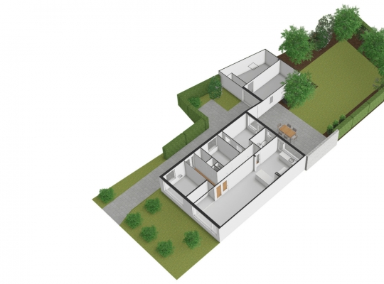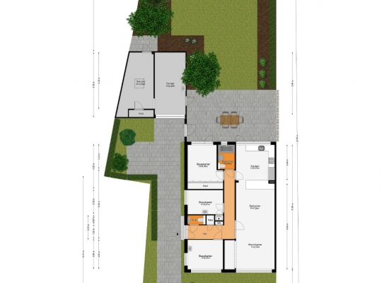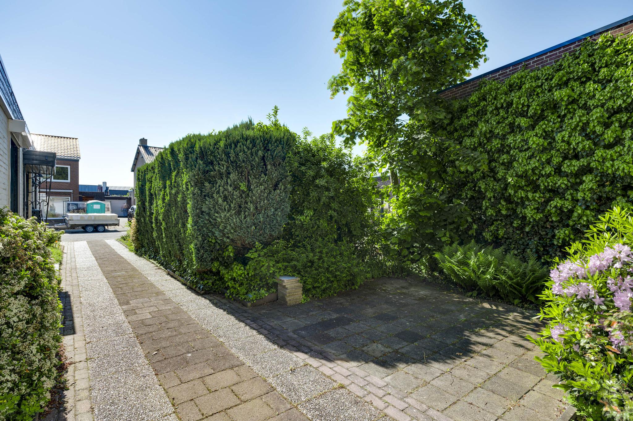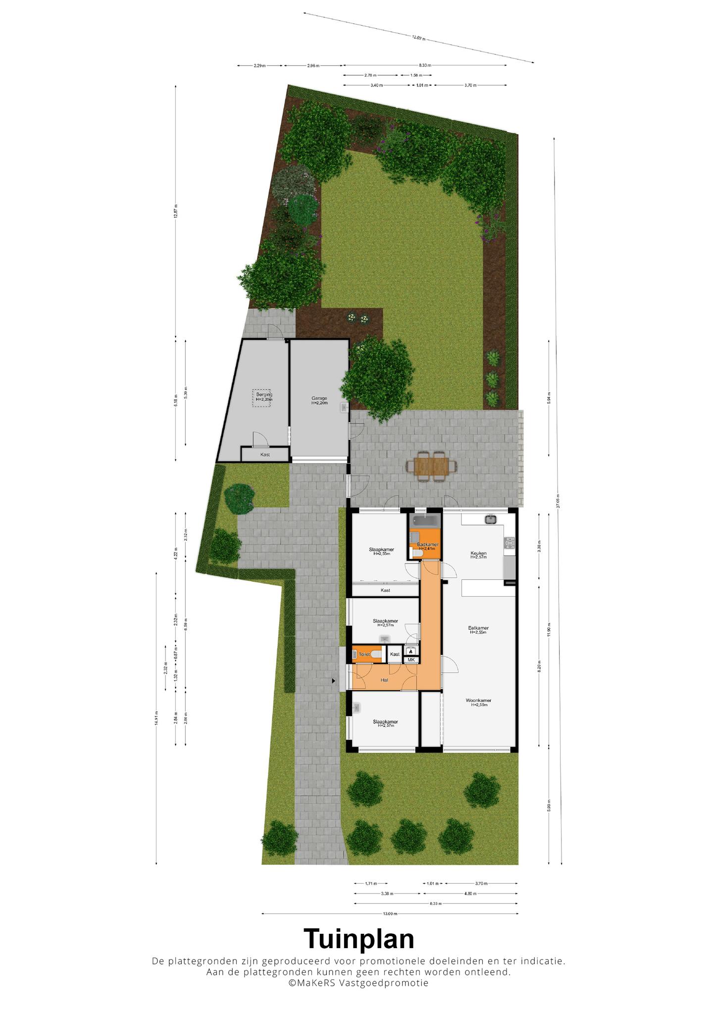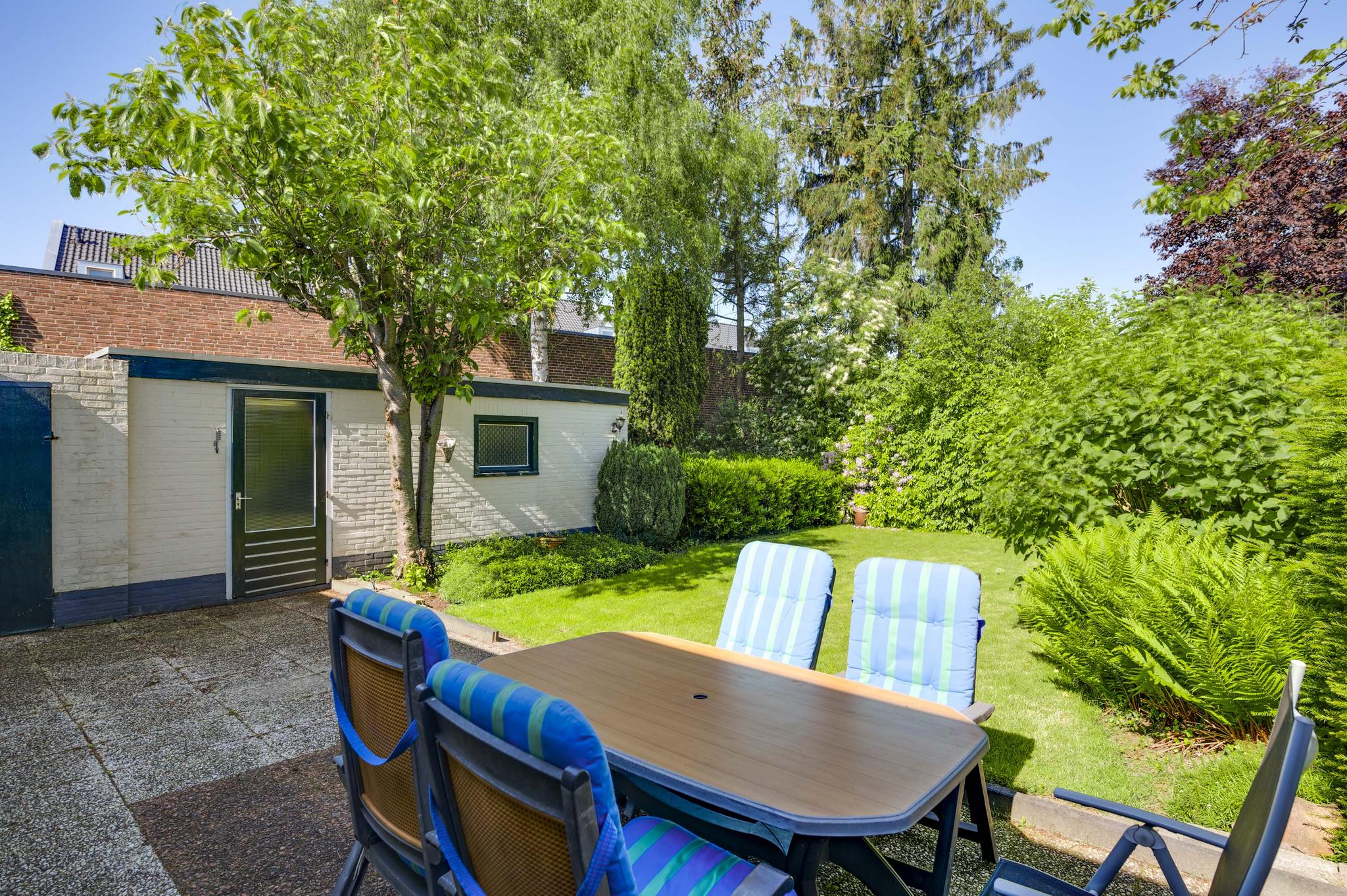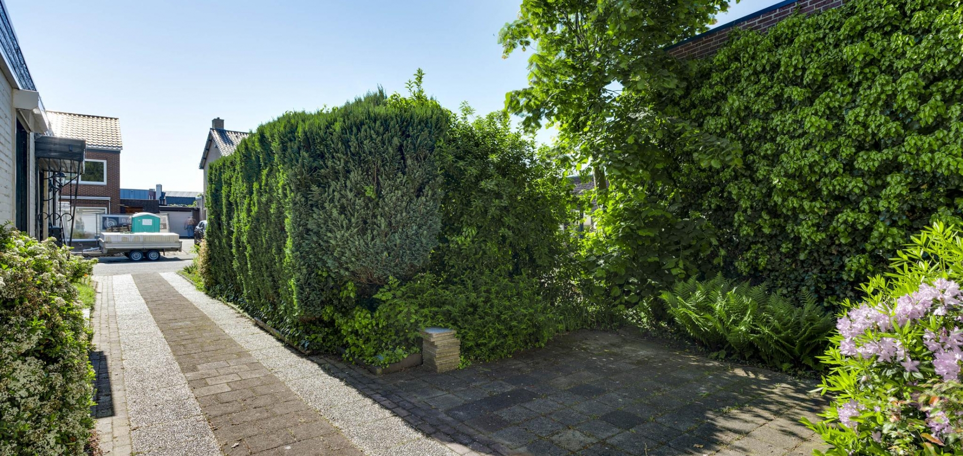 Rondom de bungalow ligt een mooi aangelegde tuin, waarbij de achtertuin op het westen gesitueerd is. Op de diepe oprit is parkeergelegenheid voor meerdere auto’s en in de achtertuin ervaart u veel privacy. Het terras aan de linkerzijde, bij de oprit, is gesitueerd op het zuiden en het grote terras aan de achterzijde op het westen. De garage (ca. 17,5 m2) en berging/hobbyruimte (ca. 18,2 m2) bieden ruimte aan de auto, motor, fietsen en het tuin-/klusgereedschap.