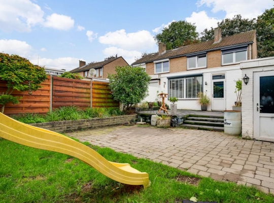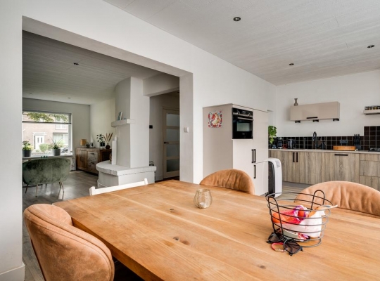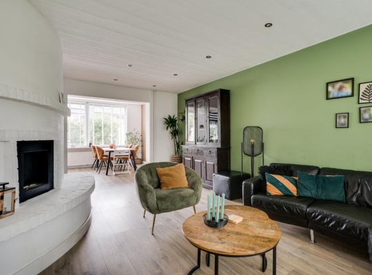 Ruime, sfeervolle woning met een diepe garage en 3 slaapkamers. In het mooiste stuk van de straat, met groen voor de deur, staat deze 2-onder-1 kapwoning met een oprit voor 2 auto’s, een zeer ruime garage en een lichte aanbouw met sfeervolle eetkeuken. Boven zijn 3 slaapkamers met rolluiken, de badkamer met 2e toilet en een zolder waardoor dit huis aan veel wensen voldoet.