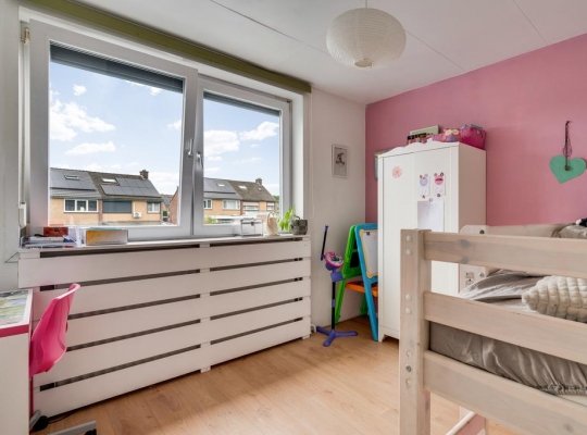 Aan de voorzijde is slaapkamer I (circa 12 m2) en aan de achterzijde zijn slaapkamer II (circa 9 m2) en slaapkamer III (circa 7,3 m2). In de kamers aan de achterzijde, in gebruik als kinderkamer, is een radiatorombouw met brede vensterbank gemaakt.