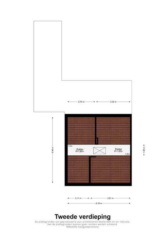 Op de overloop is een luik met vlizotrap naar de bergzolder met een vloeroppervlakte van circa 6,48 x 6,16 meter. De zolder bestaat, die uit twee delen bestaat, is voorzien van dakisolatie.