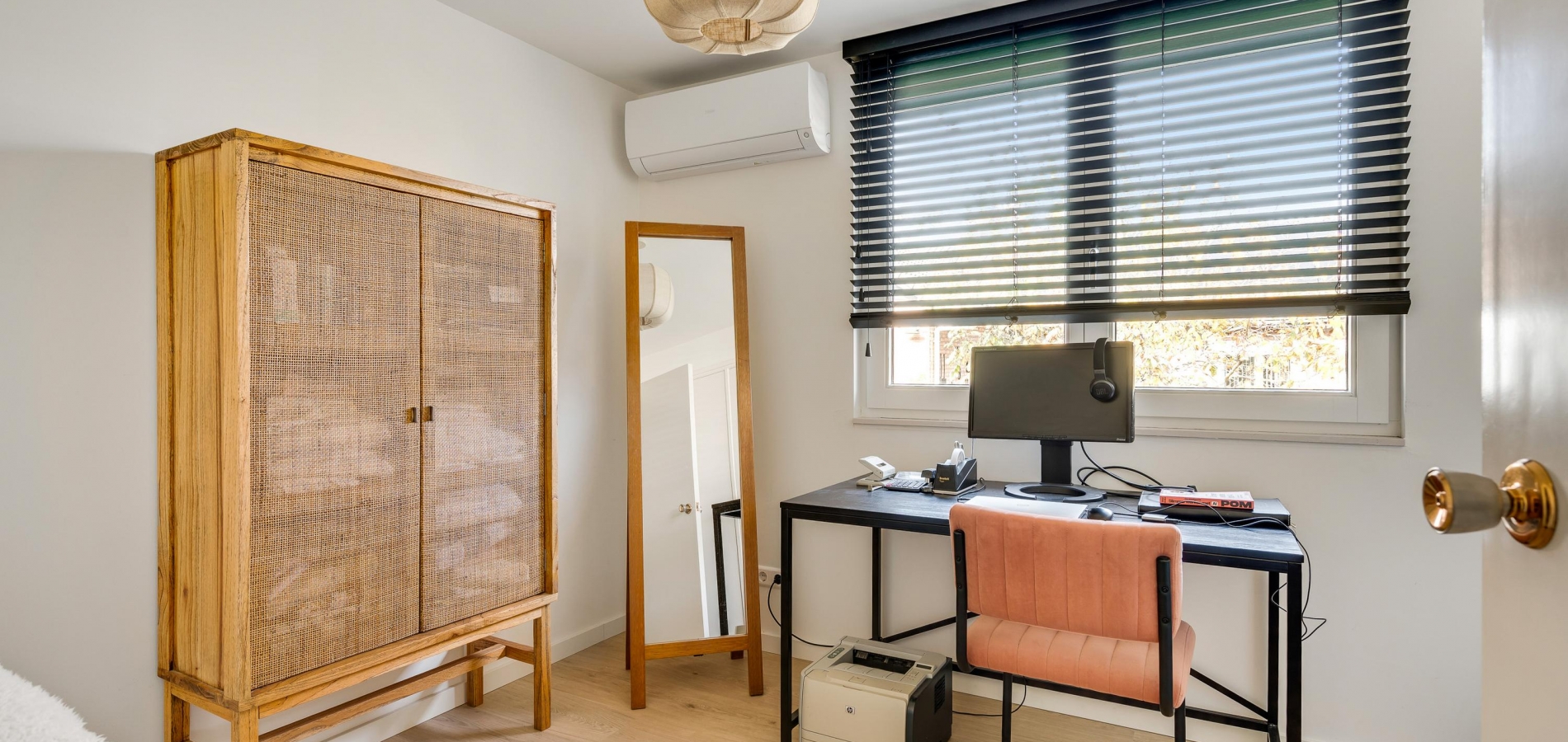 Airco (verwarmen/koelen) in de master bedroom en werkkamer