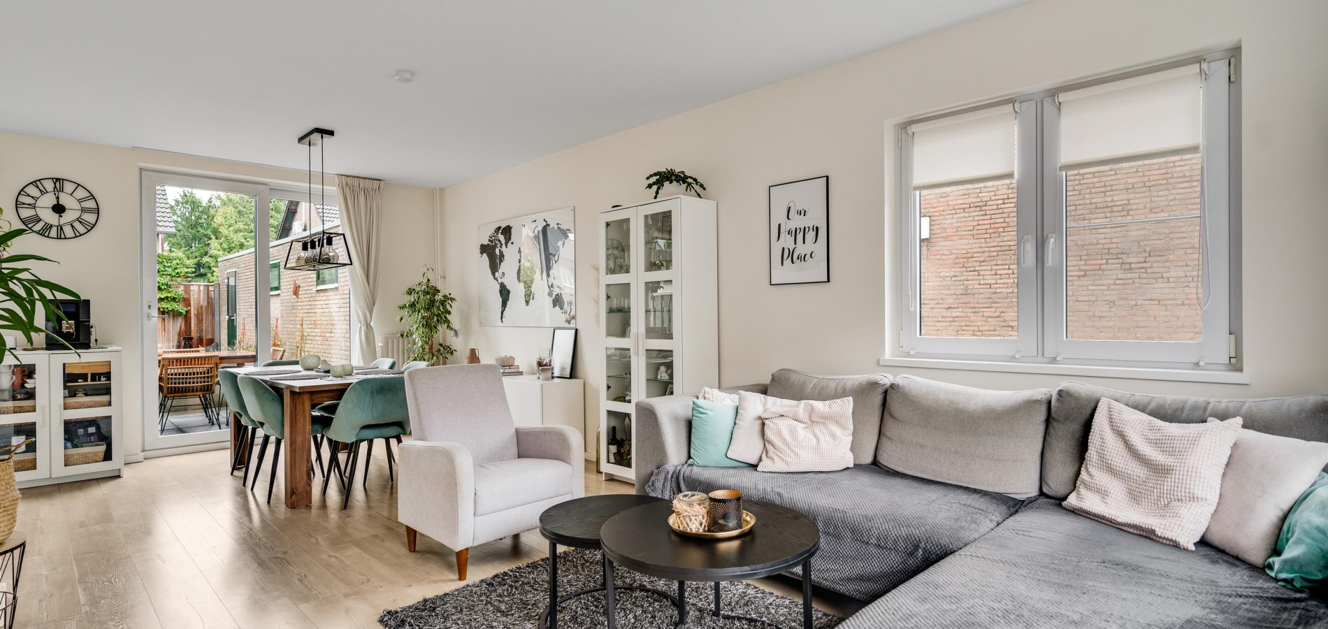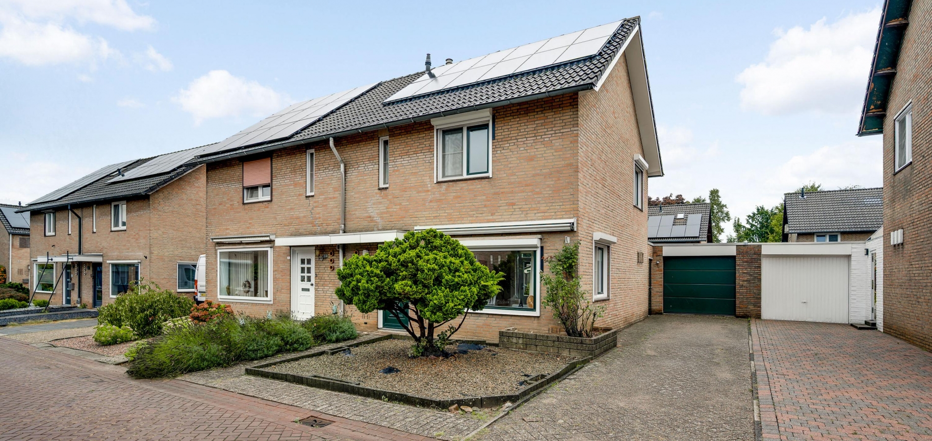 Lichte tweekapper met een ruime garage, oprit en 12 zonnepanelen.
