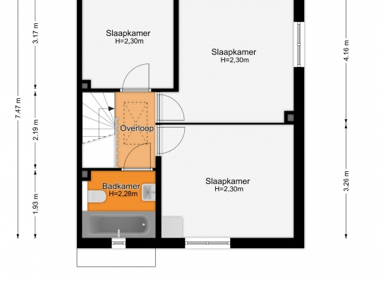 Slaapkamer I (circa 3,17 x 2,63) en slaapkamer II (circa 3,31 x 4,16) zijn aan de achterzijde. Een van deze kamers is ingericht als tweepersoonskamer, net als slaapkamer III (circa 3,26 x 3,81) die aan de voorzijde van de woning is. In alle kamers ziet u een mooie vloer, wand- en plafondafwerking.