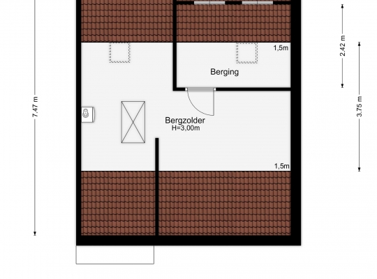 Vanaf de overloop heeft u toegang via de vlizotrap tot de ruime zolder met een nokhoogte van circa 3 meter, waar, vanwege de hoogte, het mogelijk is een extra slaapkamer te realiseren. Hier bevindt zich ook de opstelling van de HR-ketel (Remeha, 2022, eigendom) en de mechanische afzuiging van de badkamer/toiletruimte.