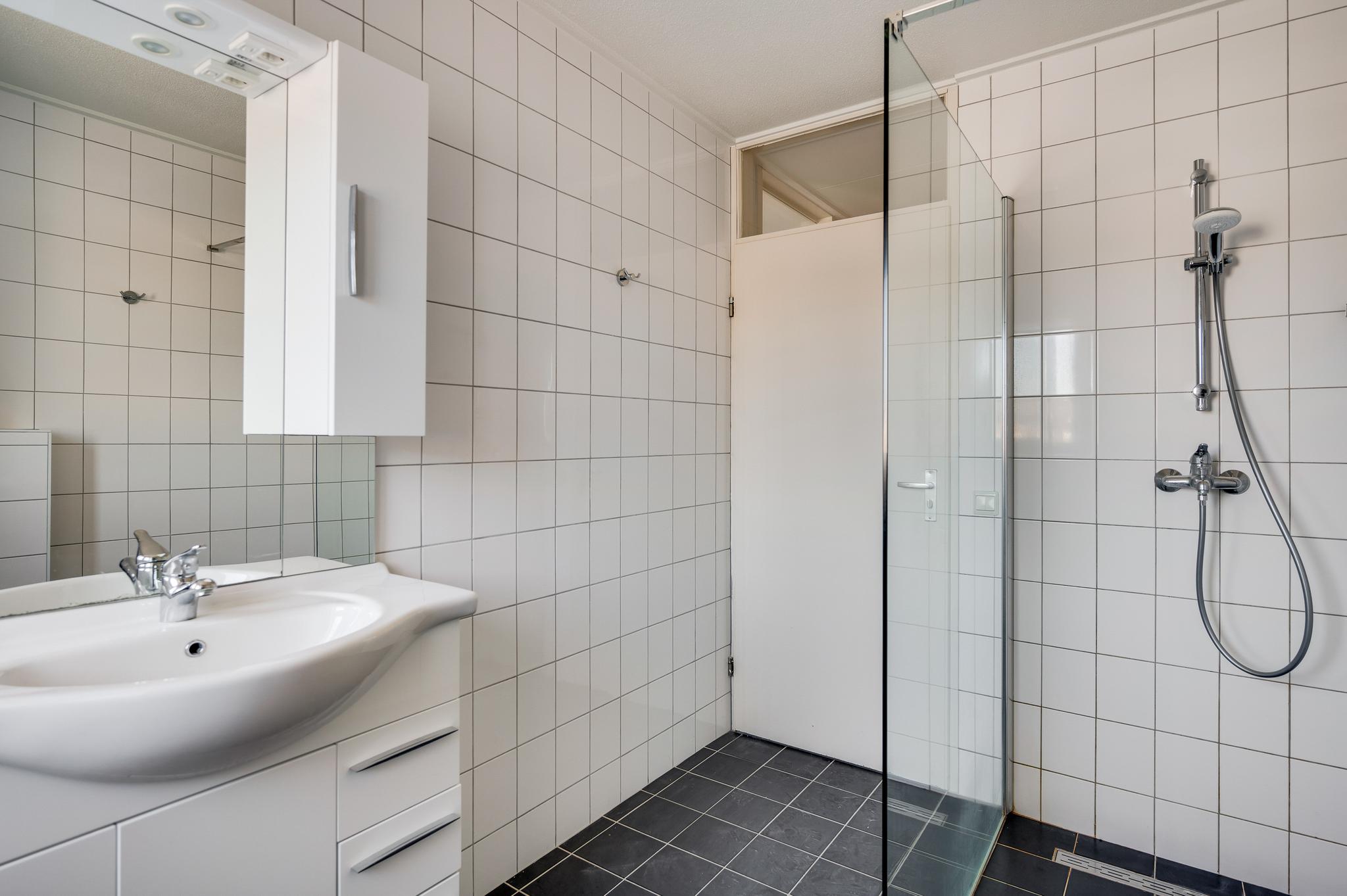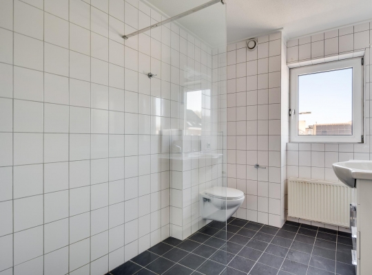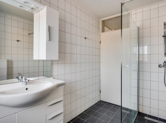 Verder zijn er een berging, cv-ruimte en een badkamer op deze verdieping. In de berging (circa 3,56 x 1,49) is de wasmachineaansluiting en in de cv-ruimte hangt een recent vernieuwde HR-ketel (Intergas, 2024, eigendom). Aan de voorzijde is de badkamer (circa 2,97 x 2,06) met een inloopdouche, wastafelmeubel en tweede toilet.