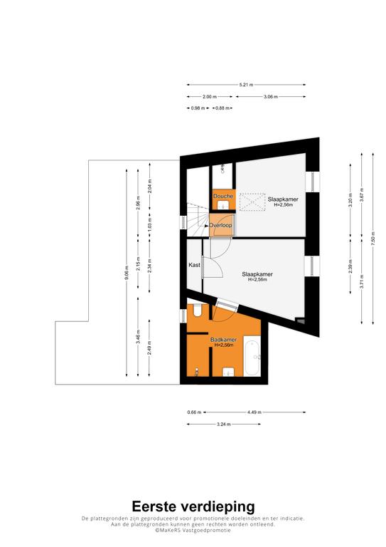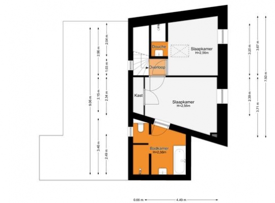 Overloop met toegang tot slaapkamer I (circa 10 m2) met toegang tot doucheruimte (circa 2 m2)