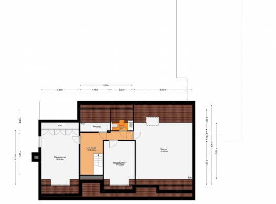 In de keuken is een trap die leidt naar het souterrain, verdeeld in twee kelderruimtes van 3,80 x 3,09 en 3,80 x 2,16). Beide ruimtes hebben een hoogte van circa 1,96 meter en zijn onder andere geschikt als wijn-/provisieruimte.
