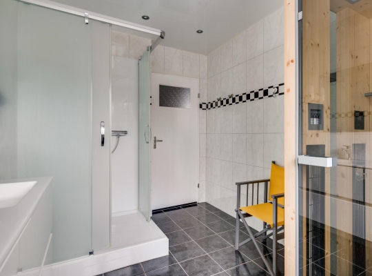 Dubbel gastenverblijf (waarvan een in gebruik als kantoor), elk met een eigen entree, tevens geschikt voor inwonende senior/ouders.