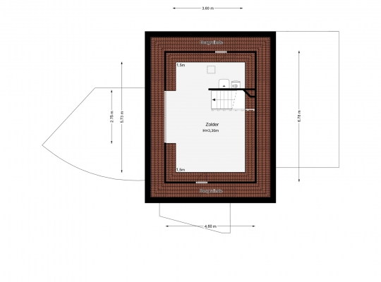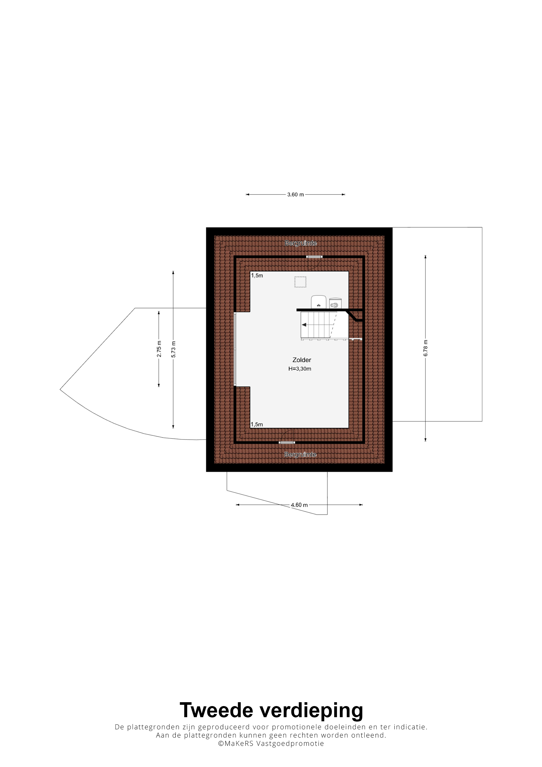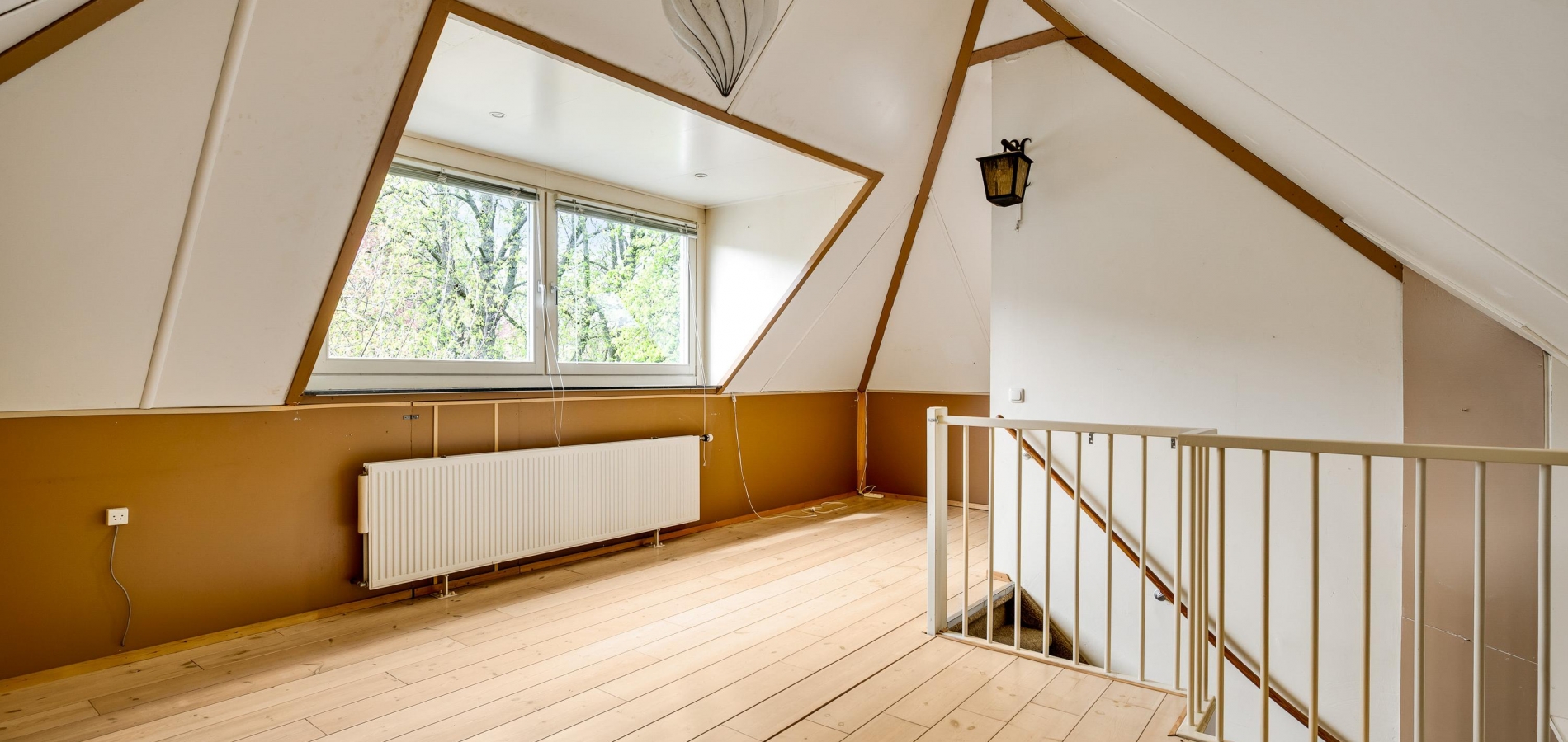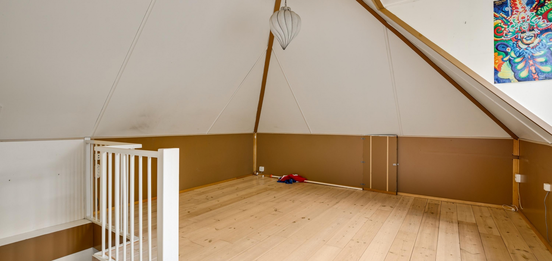 Achter een van de deuren op de overloop is een vaste trap naar de tweede verdieping. Hier heeft u de beschikking over een grote, multifunctionele kamer (circa 6,78 x 4,60) met een dakkapel, hoge nok en een houten vloer. Op een verscholen plek, achter een muurtje, is de opstelling van de HR-ketel (Gehuurd) en de ventilatieunit.