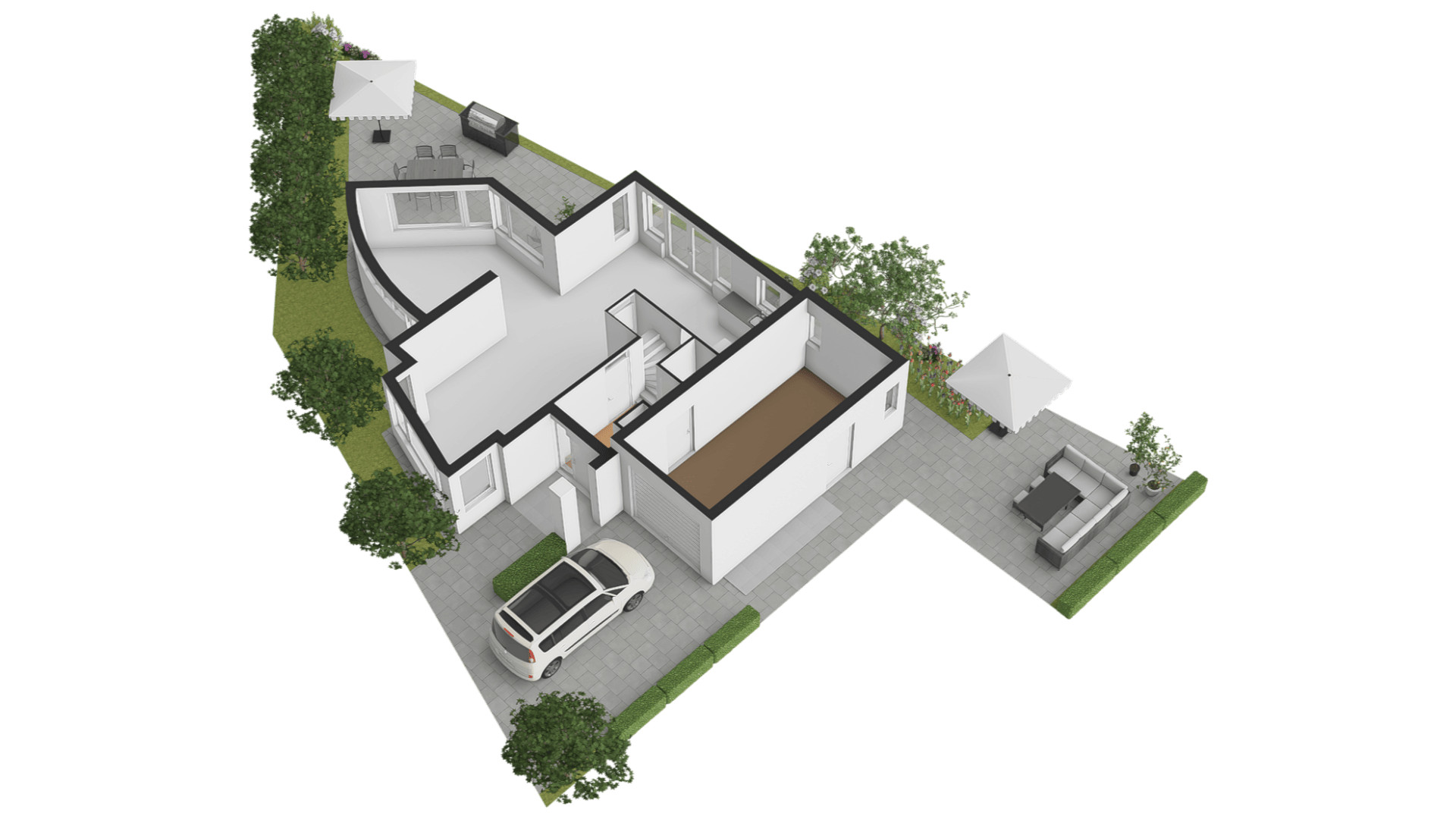 Inpandig te bereiken garage en een brede oprit