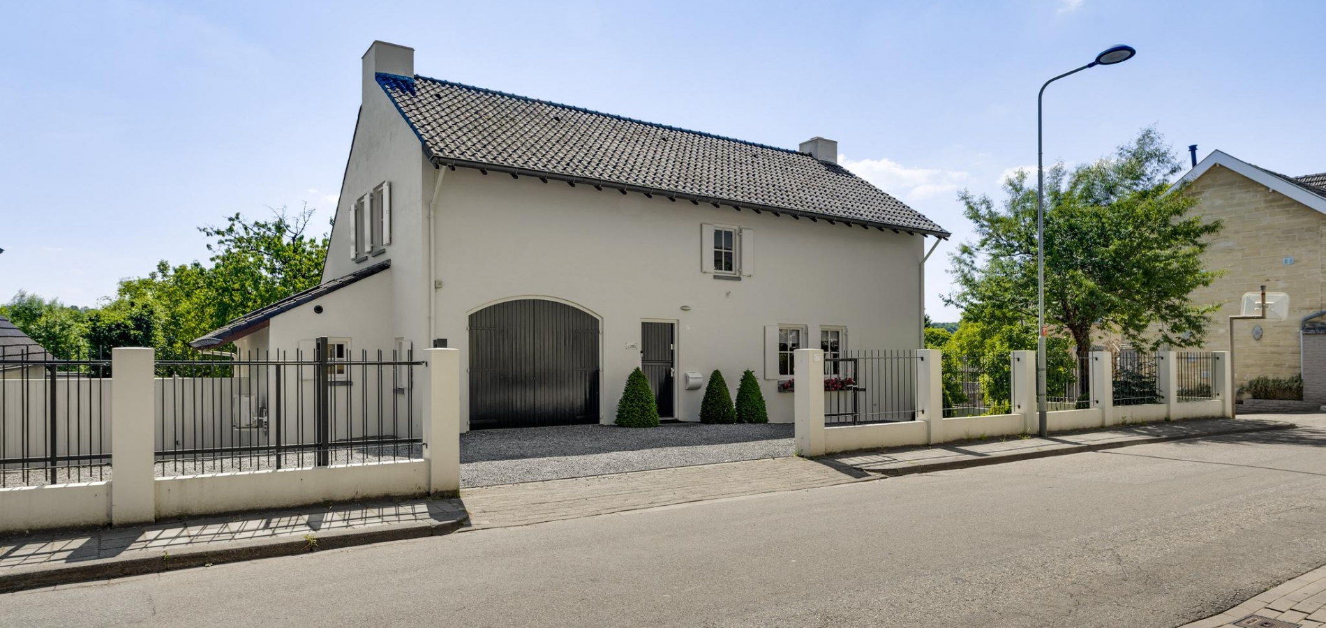 Dit fraaie woonhuis, in 1978 gerealiseerd, staat op een perceel van 3365 m2 eigen grond. Aan de voorzijde is royale parkeergelegenheid op eigen terrein, af te sluiten met een fraaie poort aan de straatzijde. Aan de linkerzijde is een witte poort, die leidt naar de paardenstallen en de hooiopslag met carport.