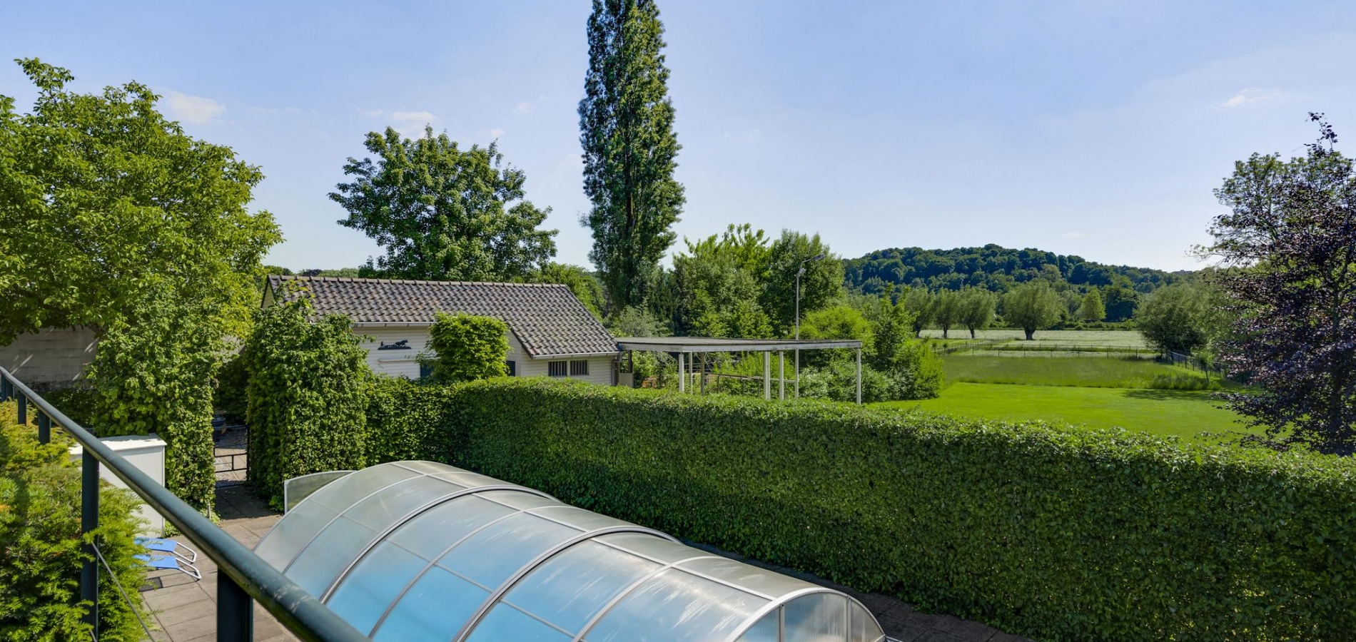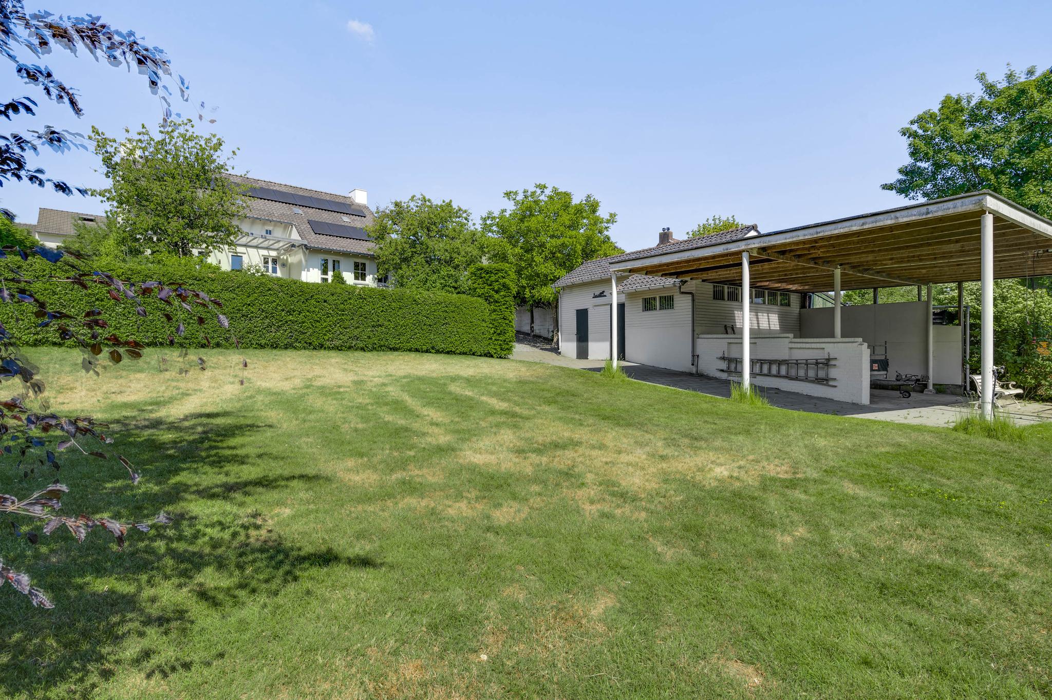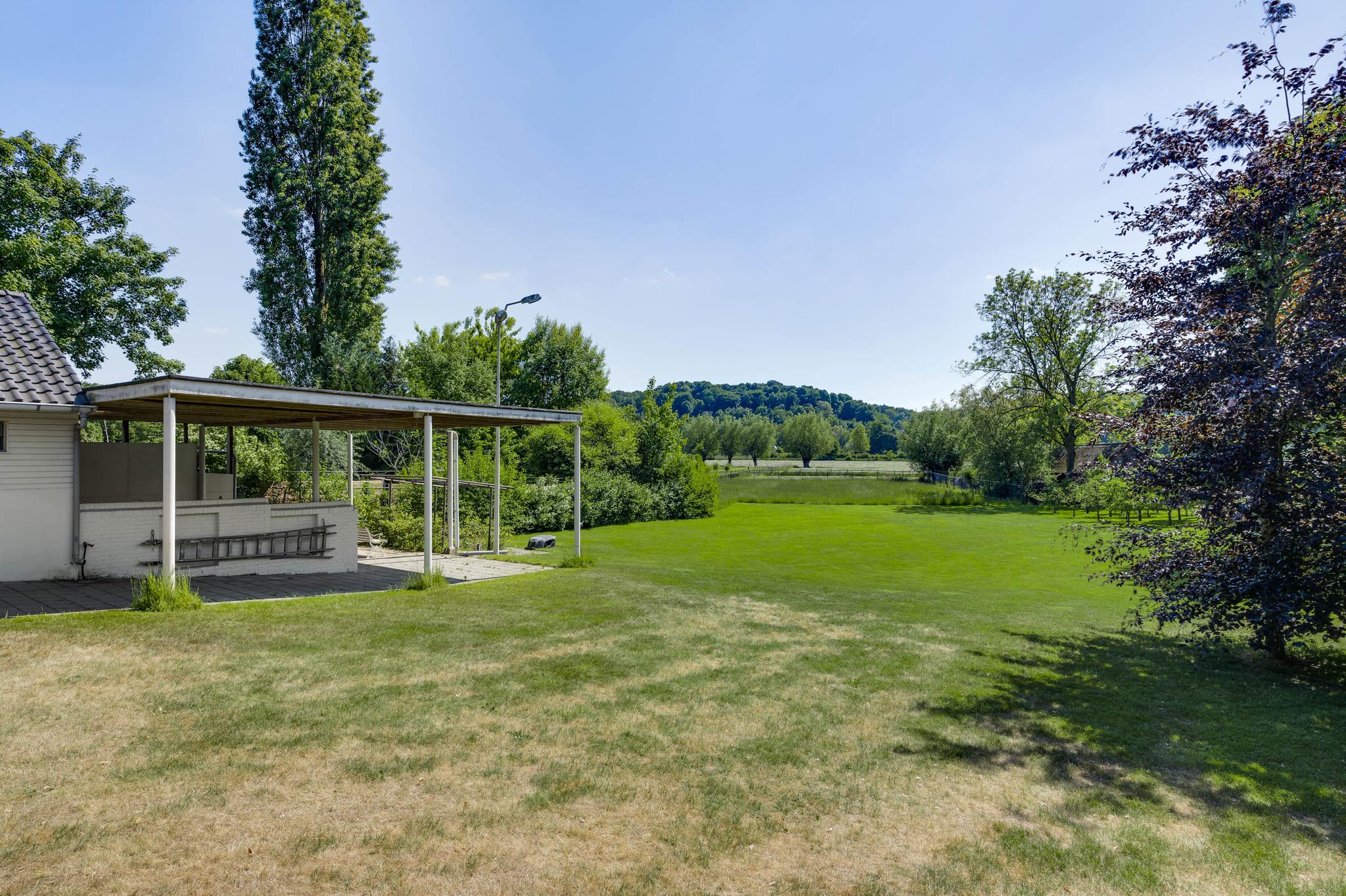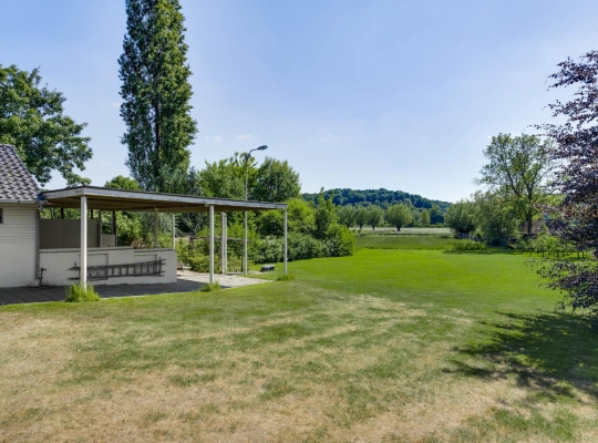 Op begane grondniveau is een groot, overdekt terras met prachtig uitzicht naar de tuin, de huisweide, het Geuldal en de Geulhemmerberg. De tuin is aangelegd in meerdere niveaus, met een zonneterras en een zwembad.