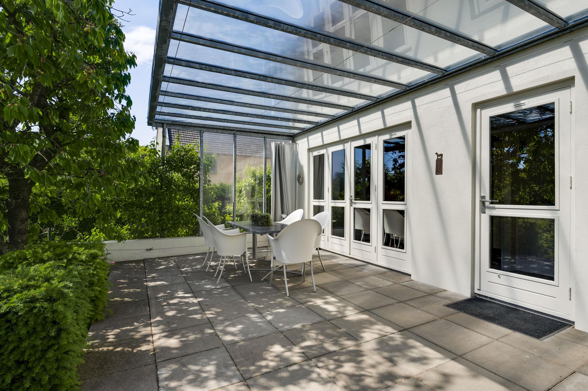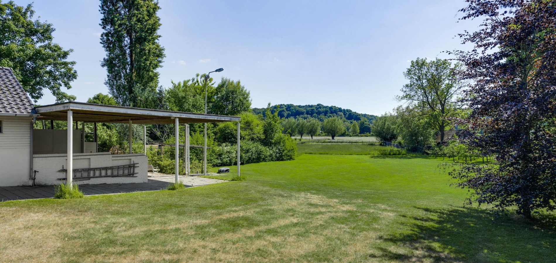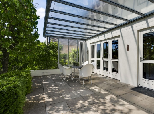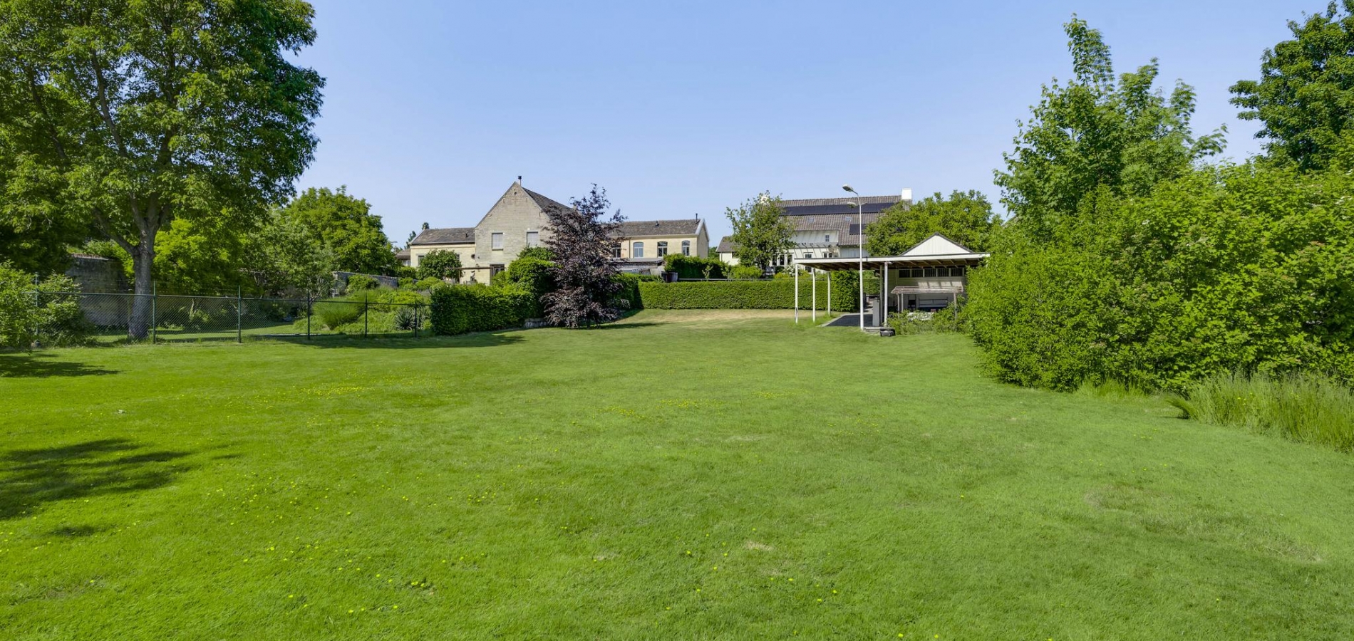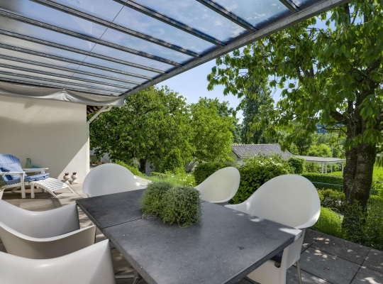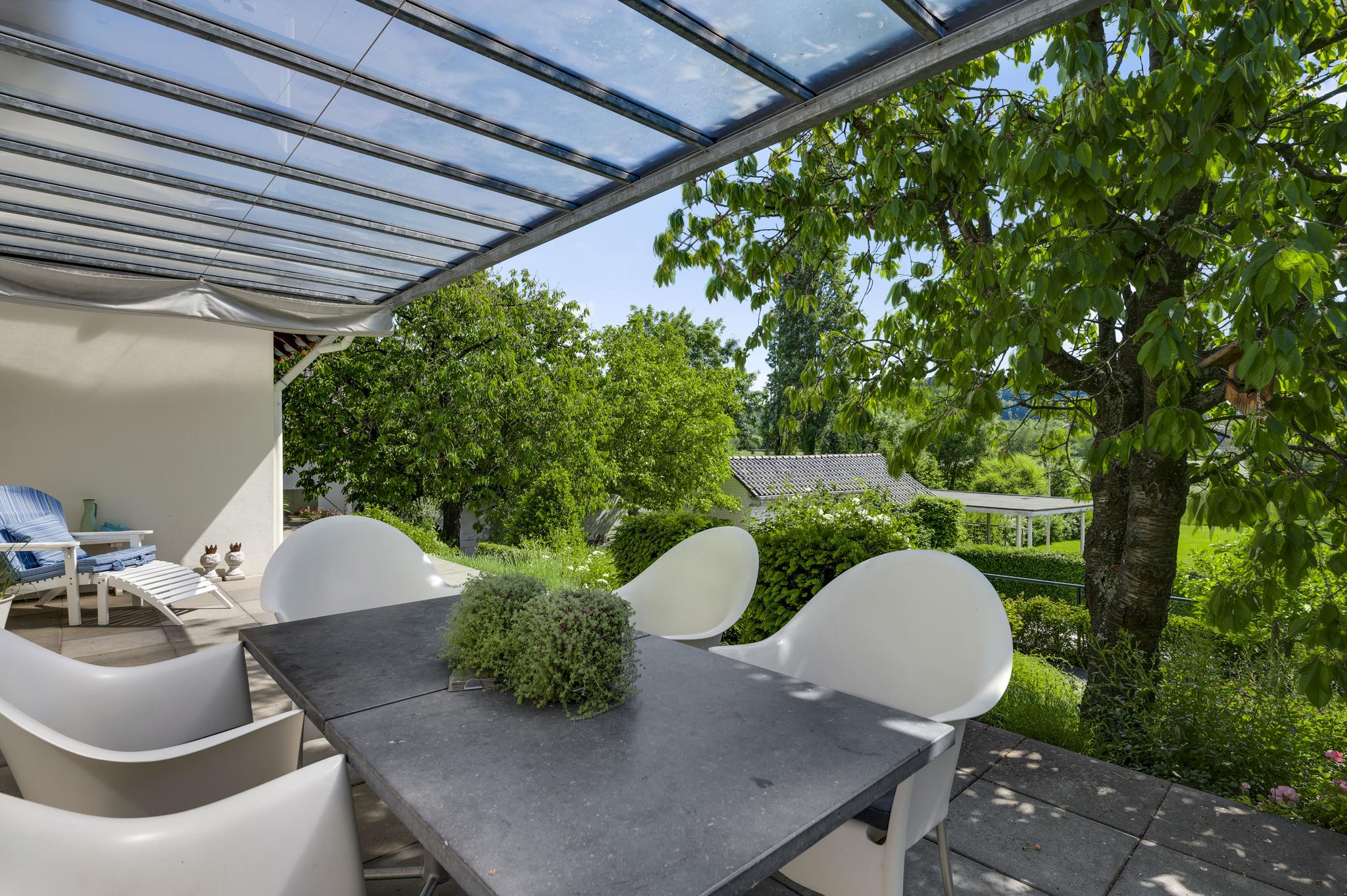 Op begane grondniveau is een groot, overdekt terras met prachtig uitzicht naar de tuin, de huisweide, het Geuldal en de Geulhemmerberg. De tuin is aangelegd in meerdere niveaus, met een zonneterras en een zwembad.