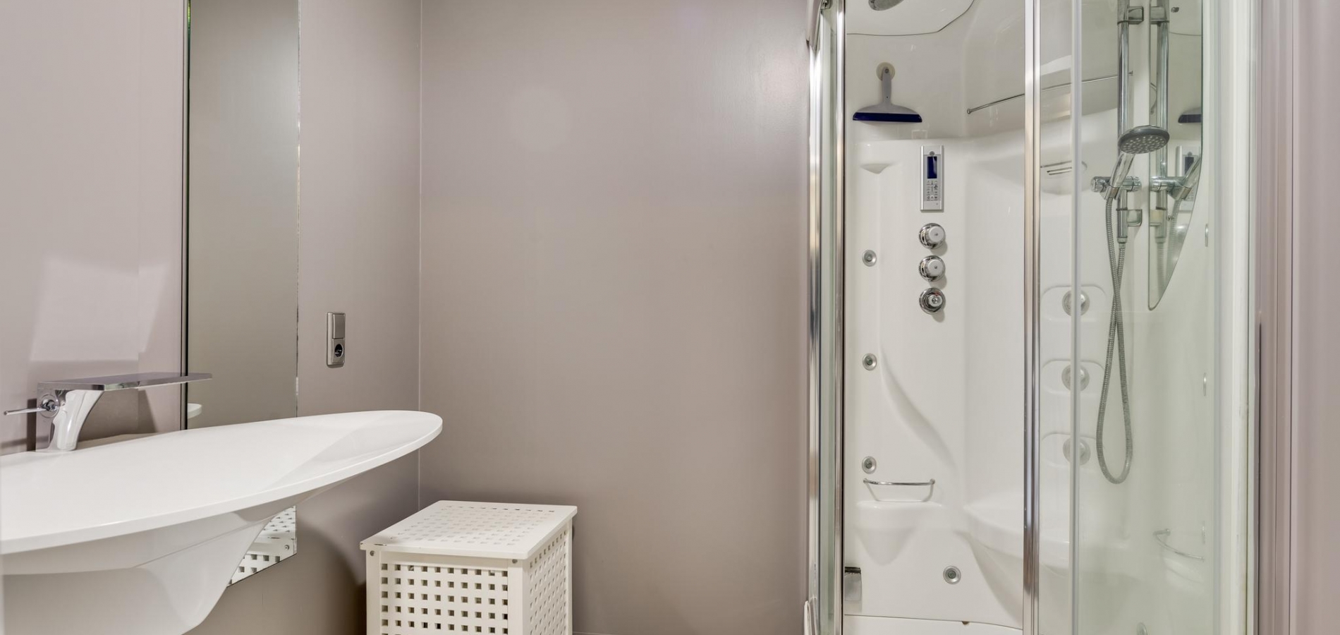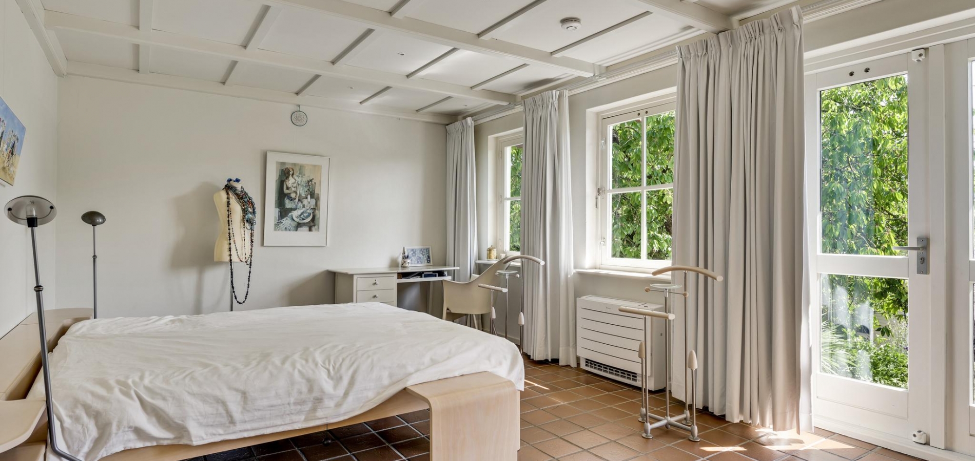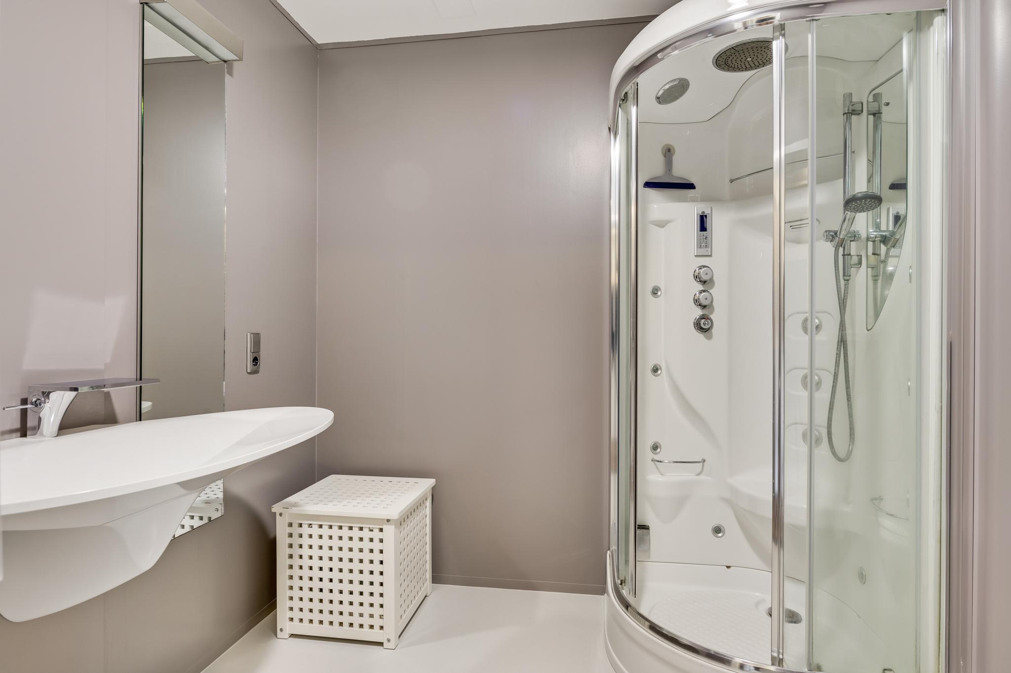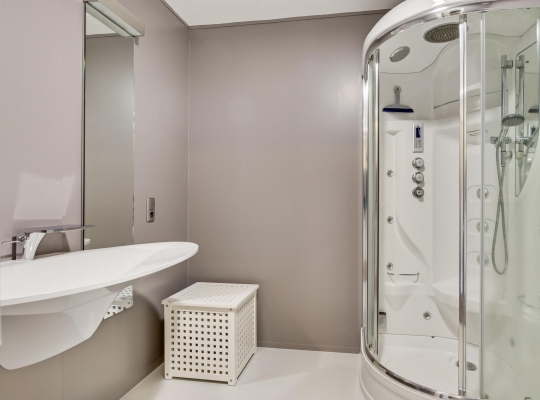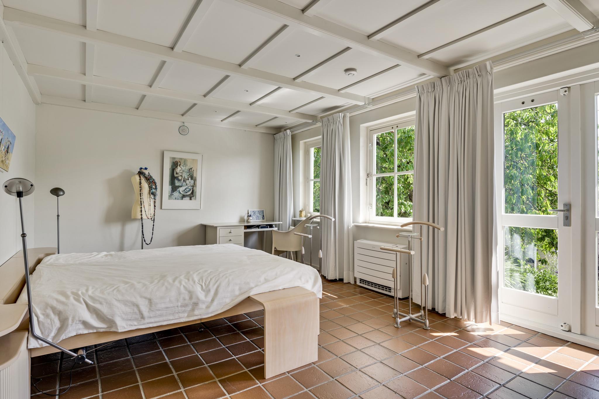 Gelijkvloers wonen is mogelijk dankzij de slaapkamer en badkamer op de begane grond. De tuingerichte slaapkamer (circa 5,80 x 3,79) heeft openslaande deuren naar de tuin en de naastgelegen badkamer (circa 2,26 x 2,20) is ingedeeld met een luxe stoom-/infrarood douche, designwastafel en een wandcloset.
