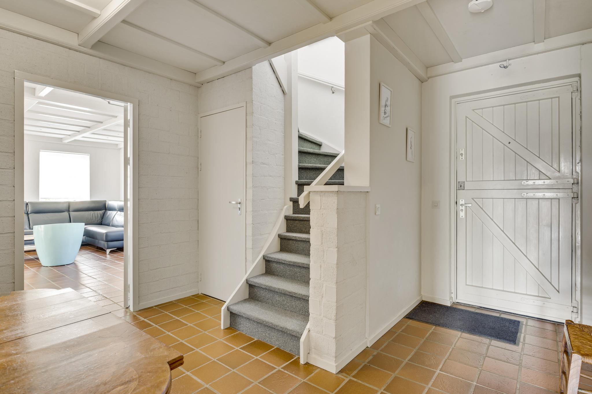 Parkeer de auto aan de voorzijde, op het grind, en loop naar de entree van deze fantastische woning. De hal is een ontvangstruimte waar karakter, sfeer en comfort volop aanwezig zijn. Aan de rechterzijde zijn de trapopgang en een handige bergkast.