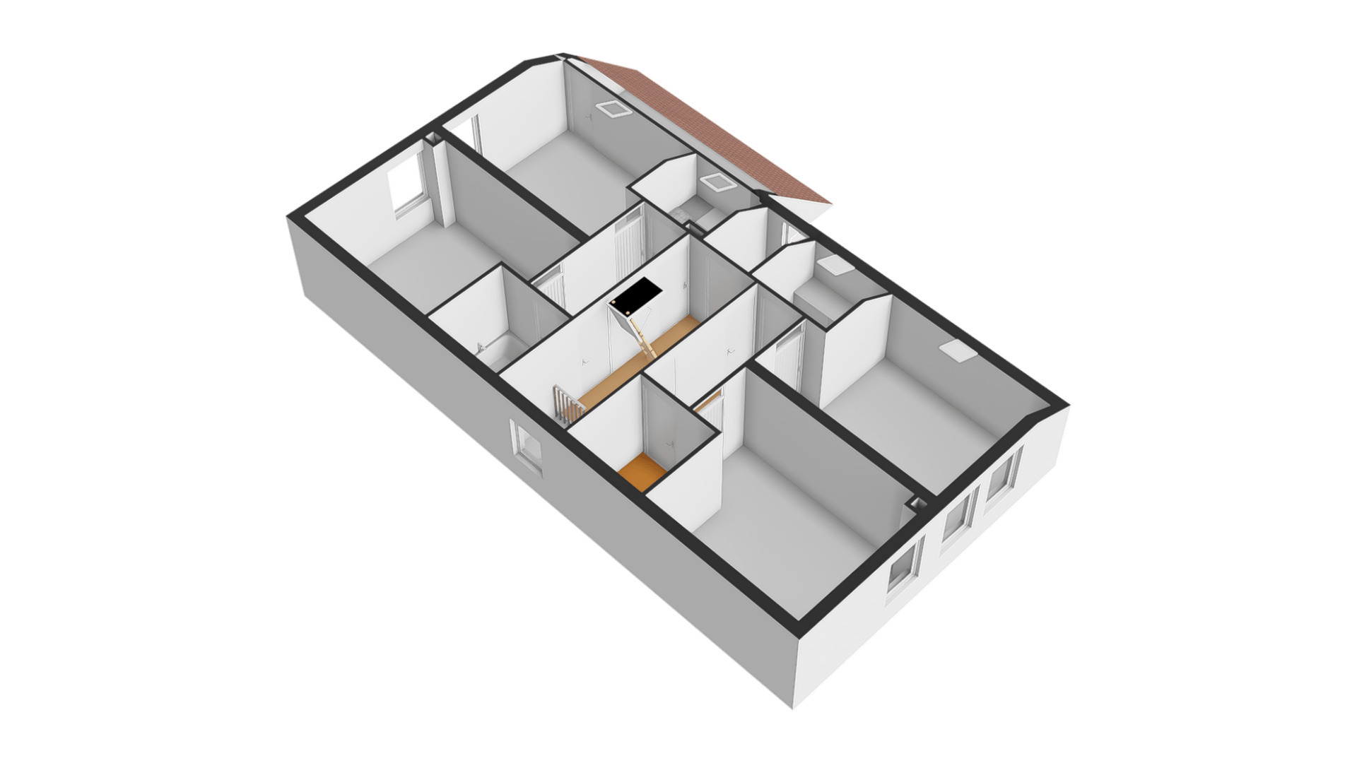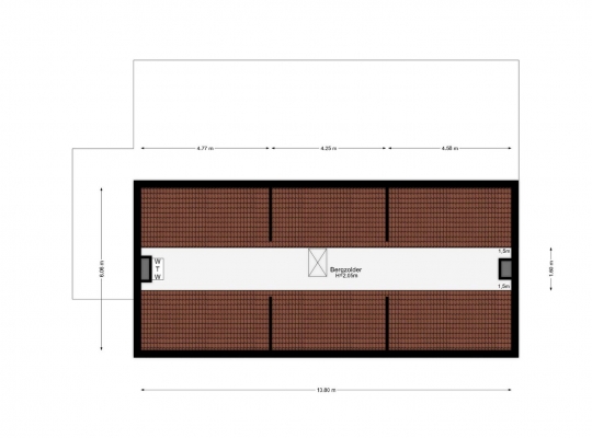 Op de overloop is een luik met vlizotrap, die toegang biedt tot de zolder. De nokhoogte bedraagt circa 2,05 meter.