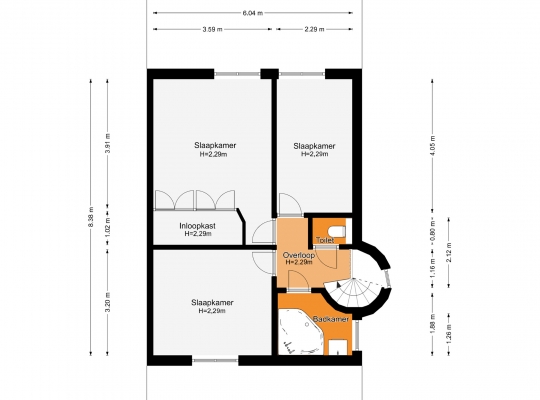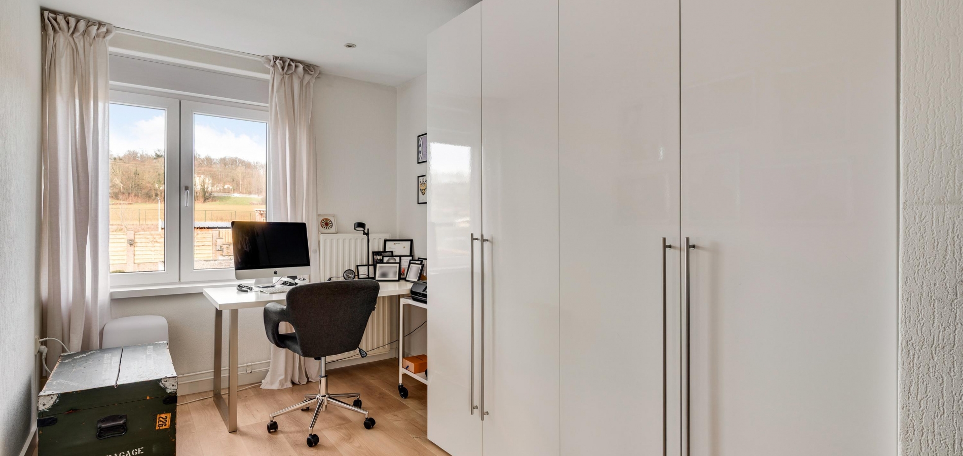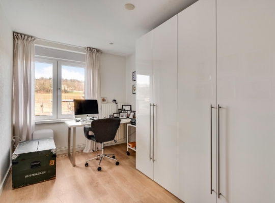 Aan de voorzijde is slaapkamer I (circa 3,59 x 3,20) en aan de achterzijde zijn slaapkamer II (circa 4,93 x 3,59) met vaste kastenwand en slaapkamer III (circa 4,05 x 2,29), in gebruik als werkkamer. In alle kamers ligt een mooie laminaatvloer met pvc-laag en in slaapkamer II, in gebruik als master bedroom, hangt een airco-unit (koelen en verwarmen).