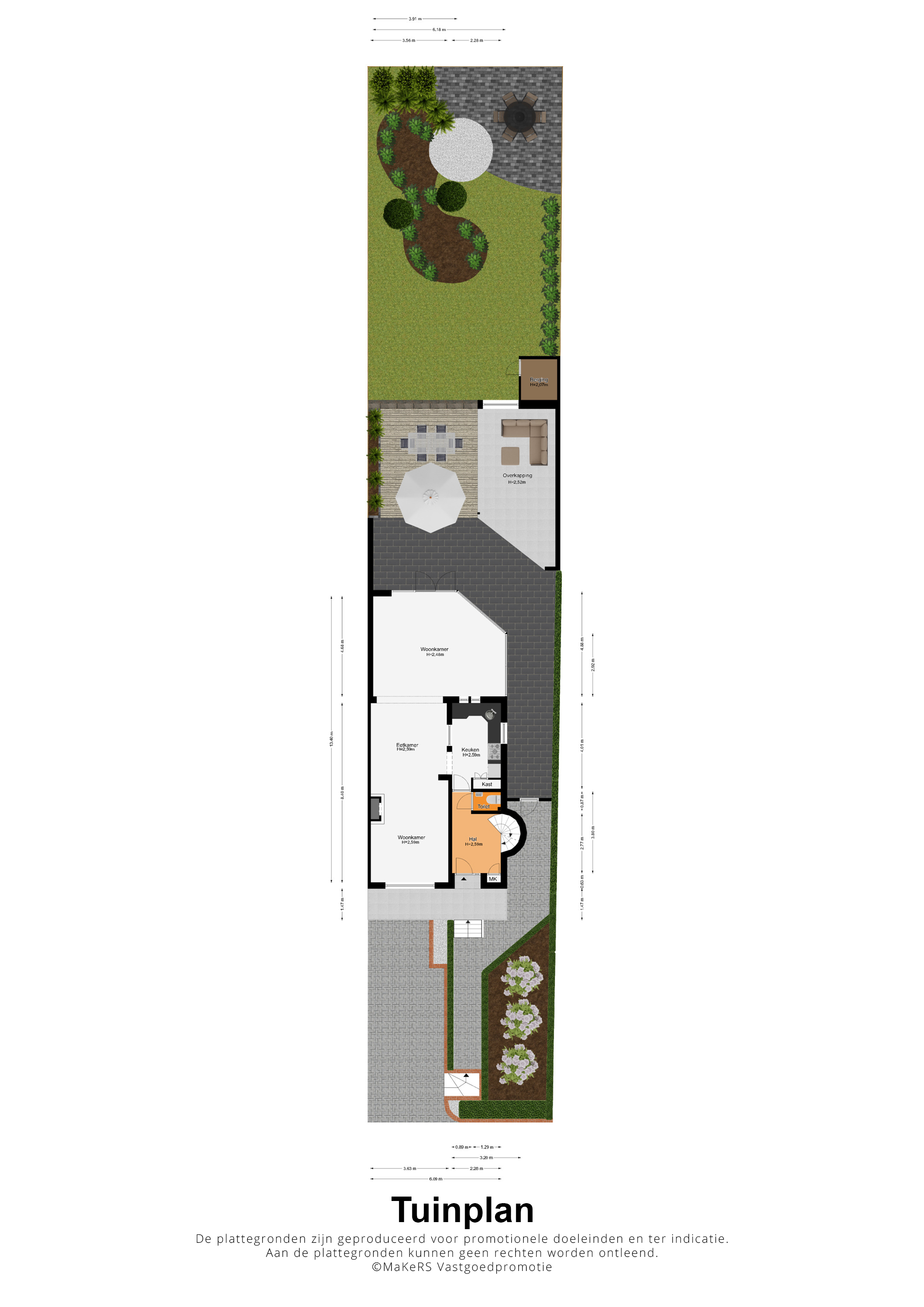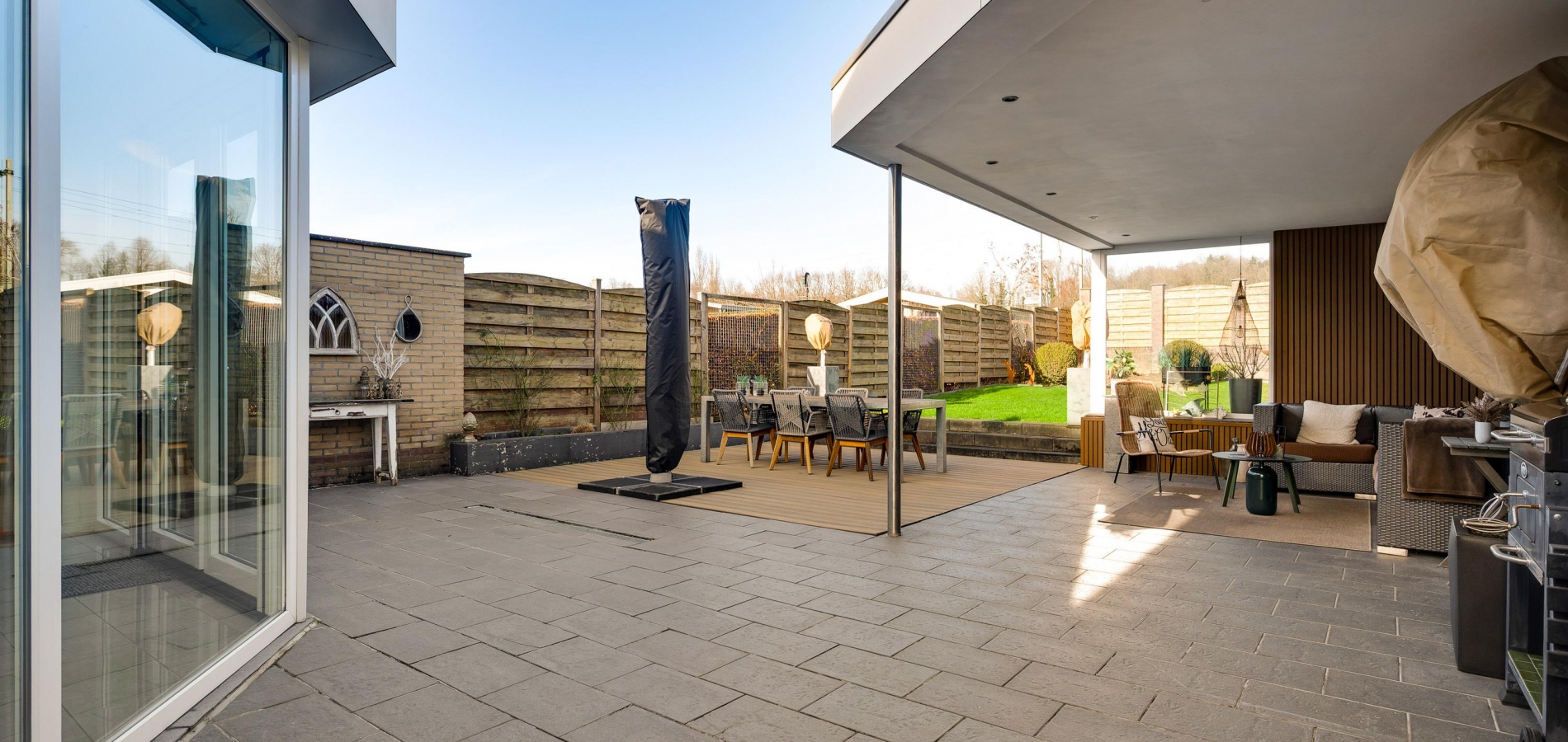 Prachtige tuin met een overdekt terras, veel groen en privacy